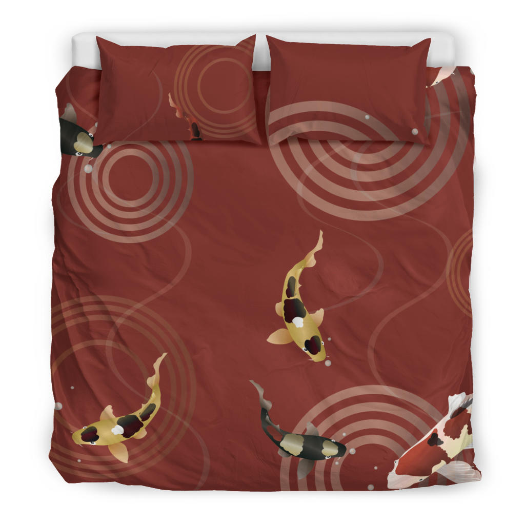 Koi Fish Carp Fish red background Bedding Set is a uniqued design and limited item. It made to order, hand printed, and sewn with love in our factory.