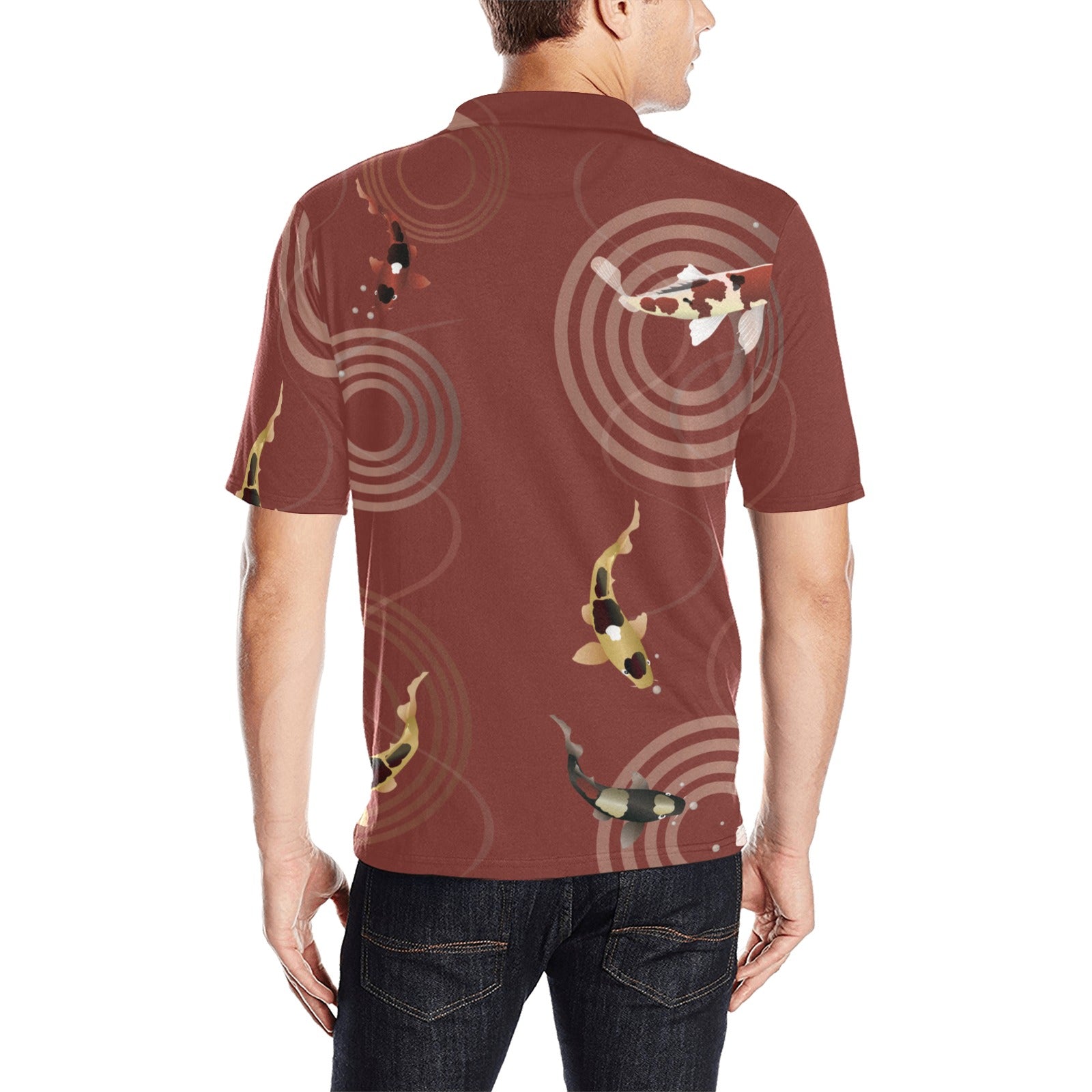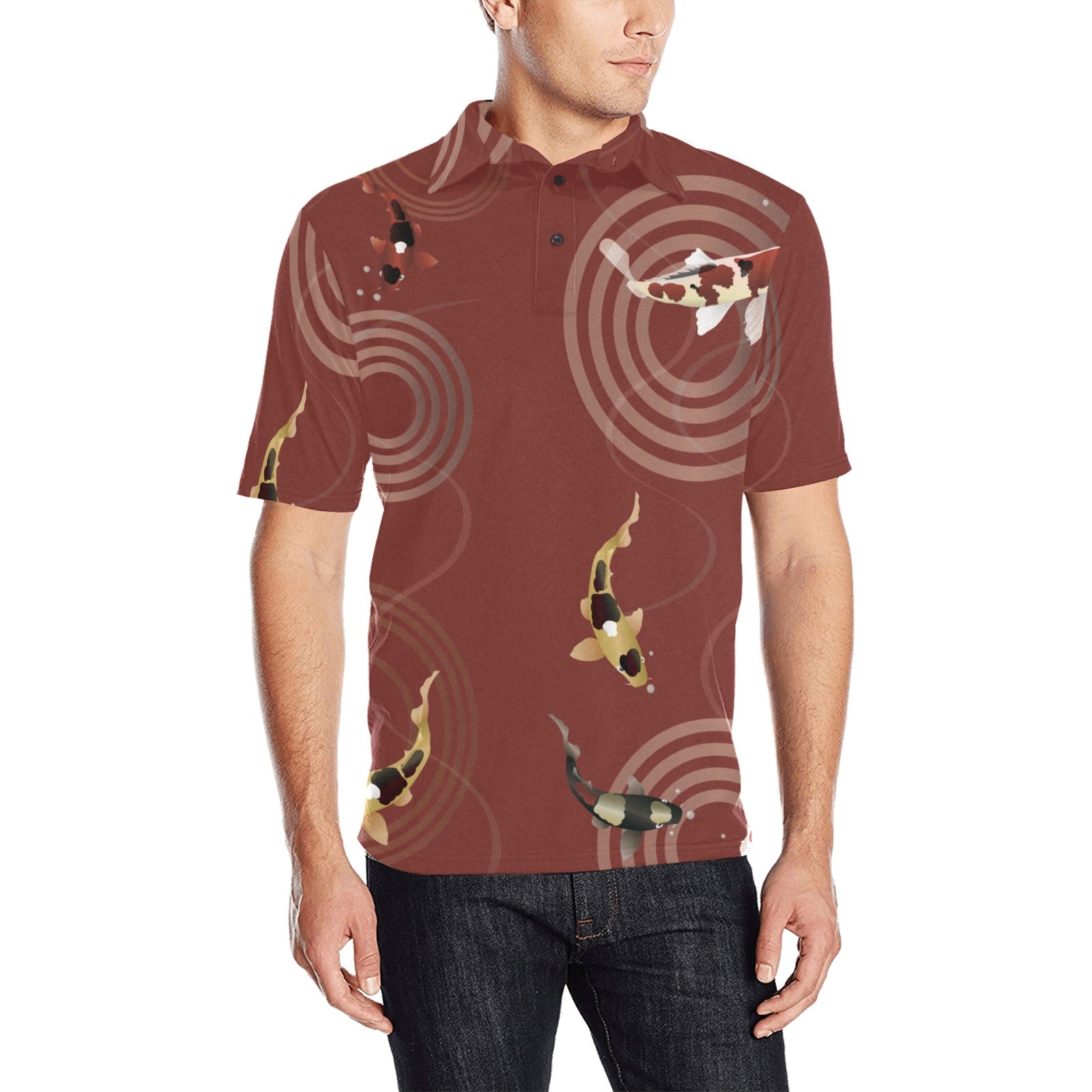 Koi Fish Carp Fish red background Men's All Over Print Polo Shirt
