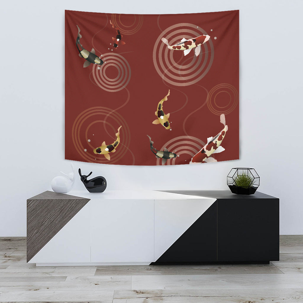Koi Fish Carp Fish Red Background Wall Tapestry
