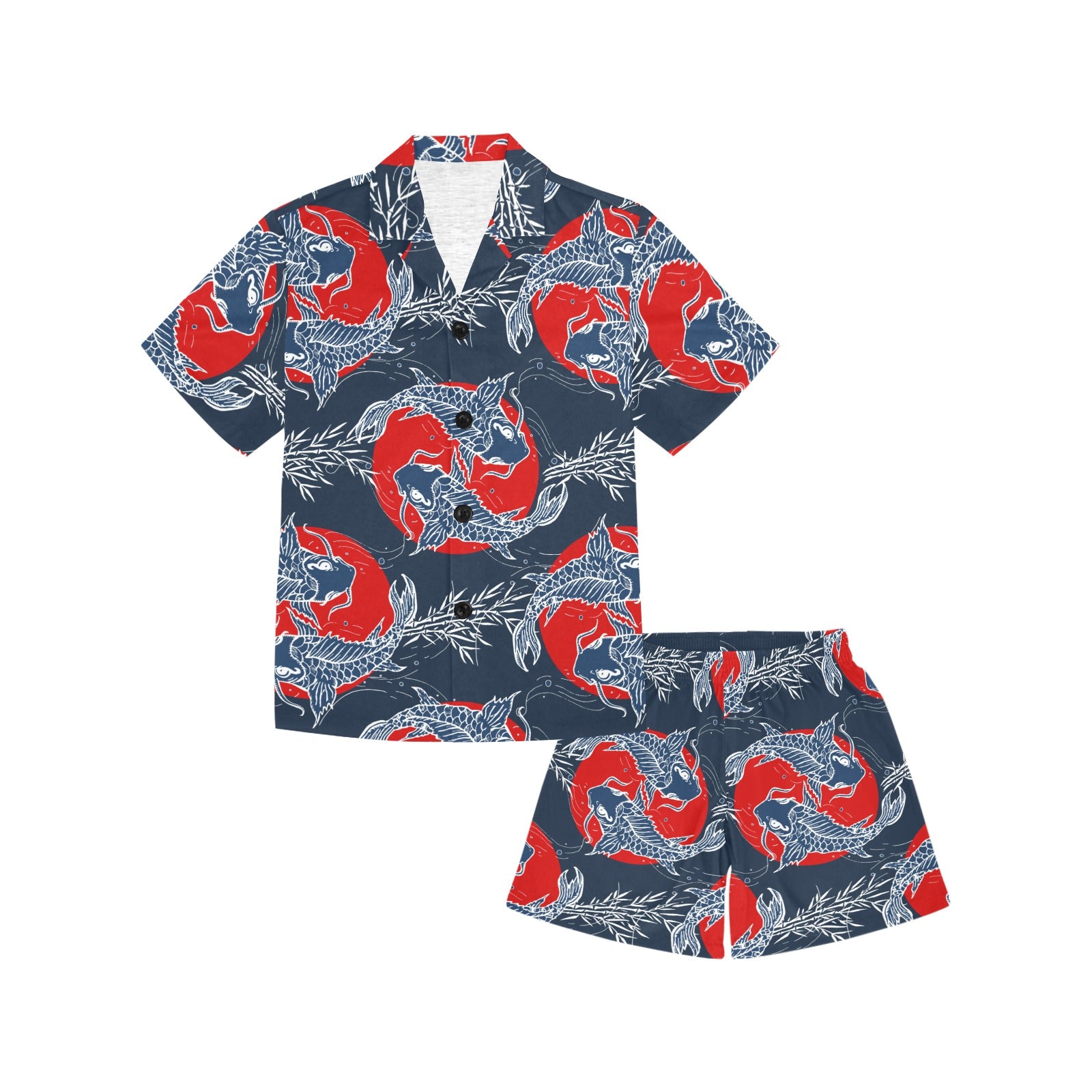 Koi Fish Carp Fishs hand drawn japanese art Kids' Boys' Girls' V-Neck Short Pajama Set