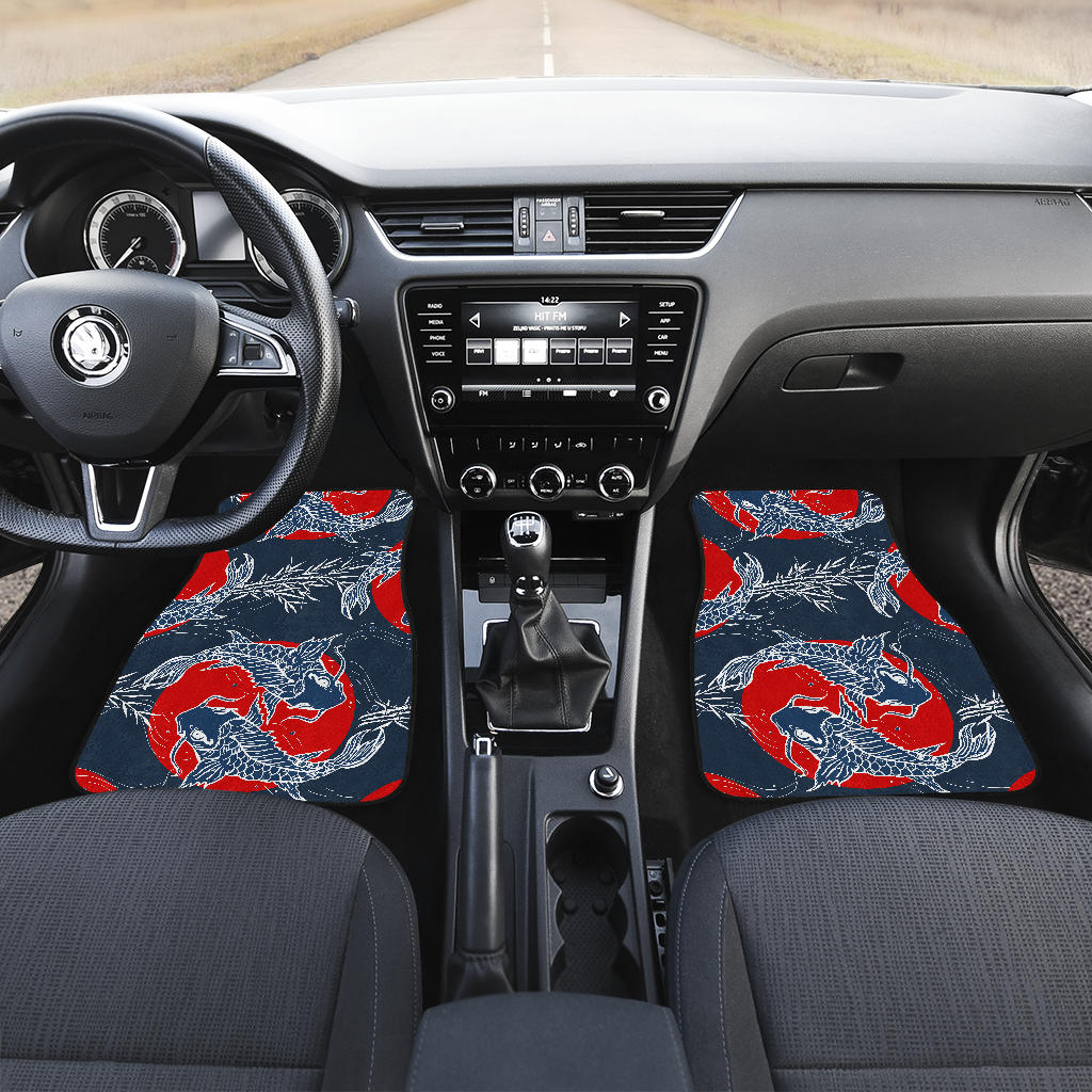 Koi Fish Carp Fishs Hand Drawn Japanese Art Front And Back Car Mats