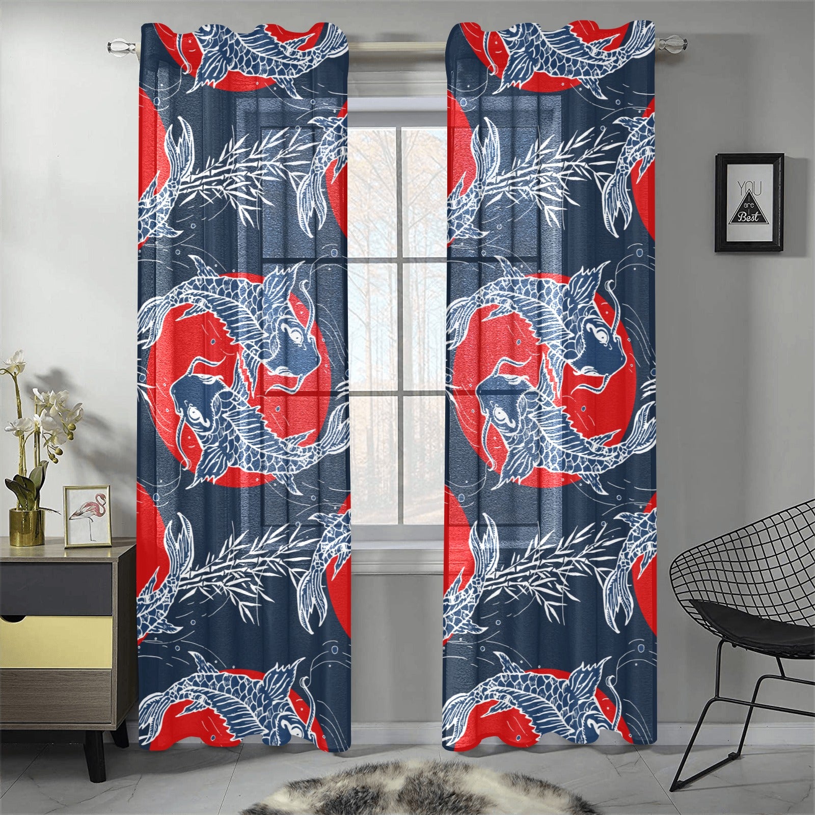 Koi Fish Carp Fishs hand drawn japanese art Gauze Curtain