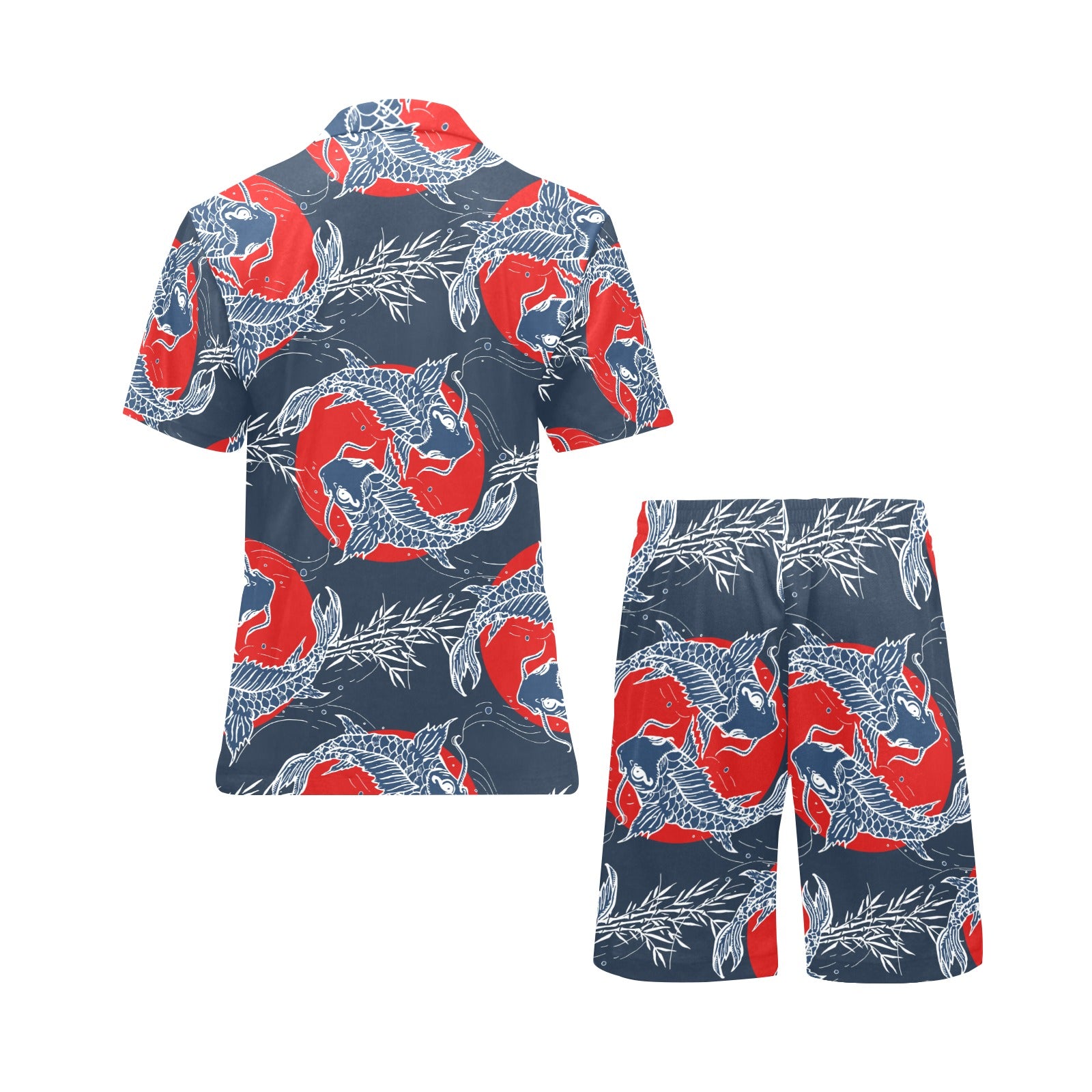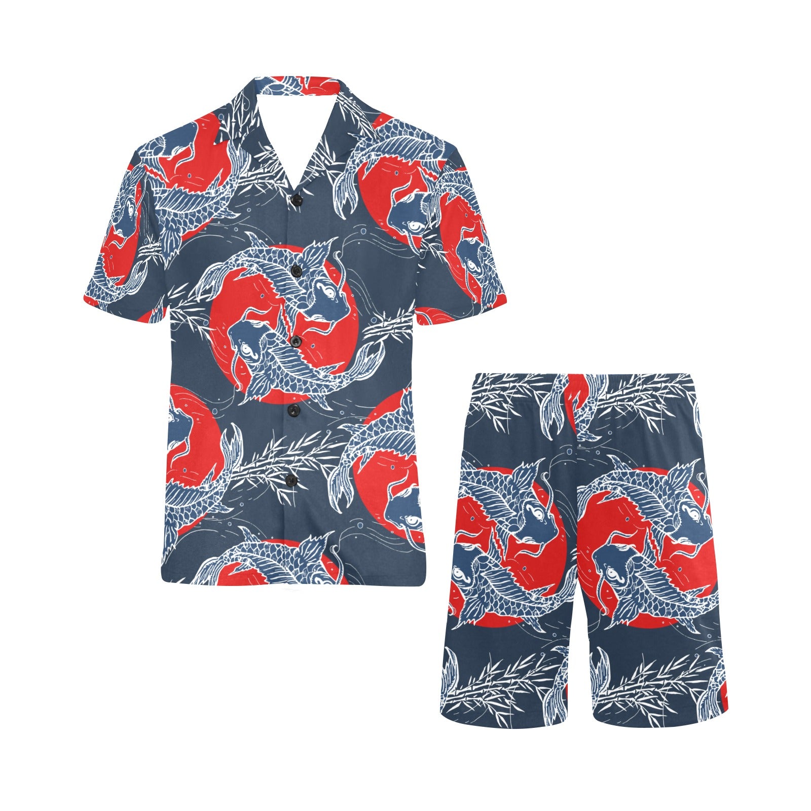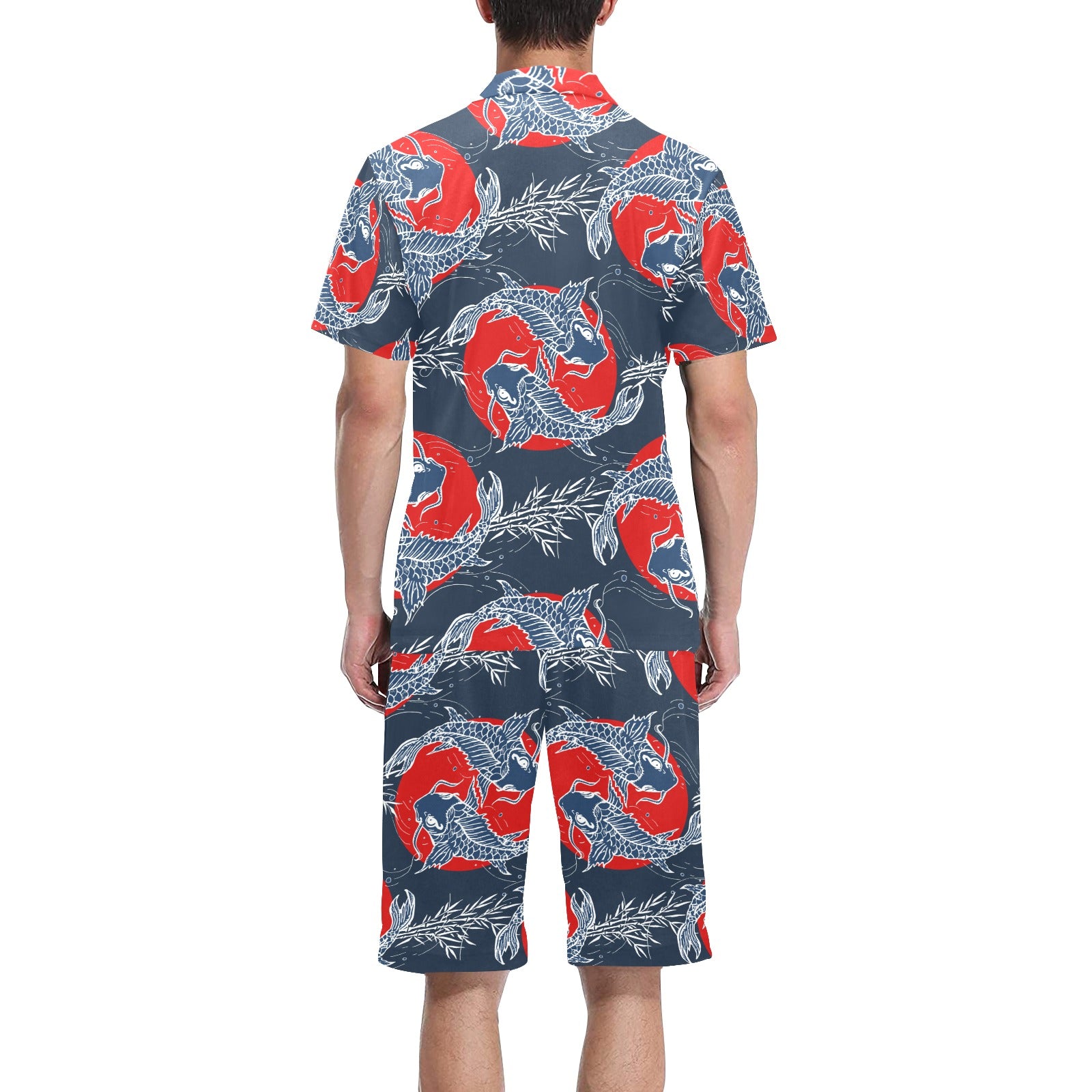 Koi Fish Carp Fishs hand drawn japanese art Men's V-Neck Short Pajama Set