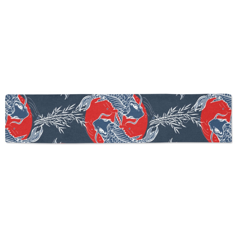 Koi Fish Carp Fishs hand drawn japanese art Table Runner