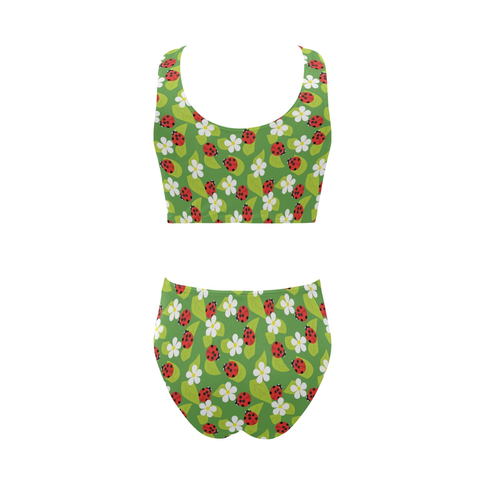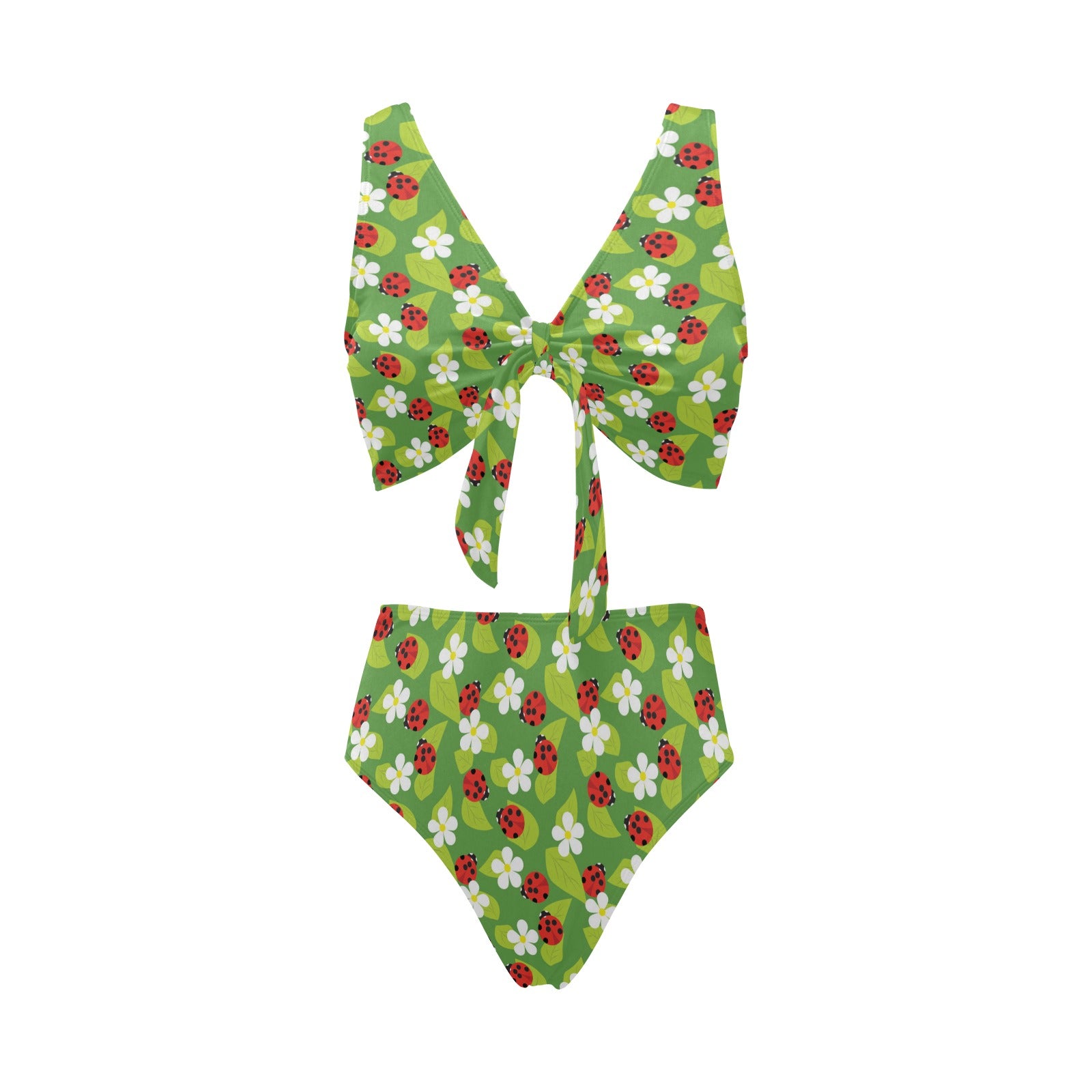 Ladybug Pattern Print Design 01 Chest Bowknot High Waisted Bikini Swimsuit