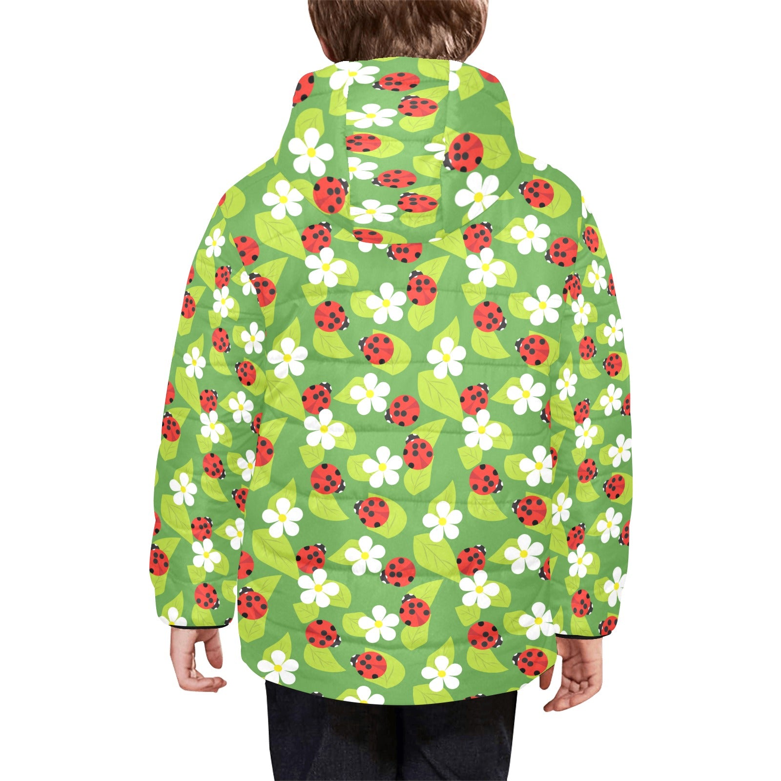 Ladybug Pattern Print Design 01 Kids' Boys' Girls' Padded Hooded Jacket
