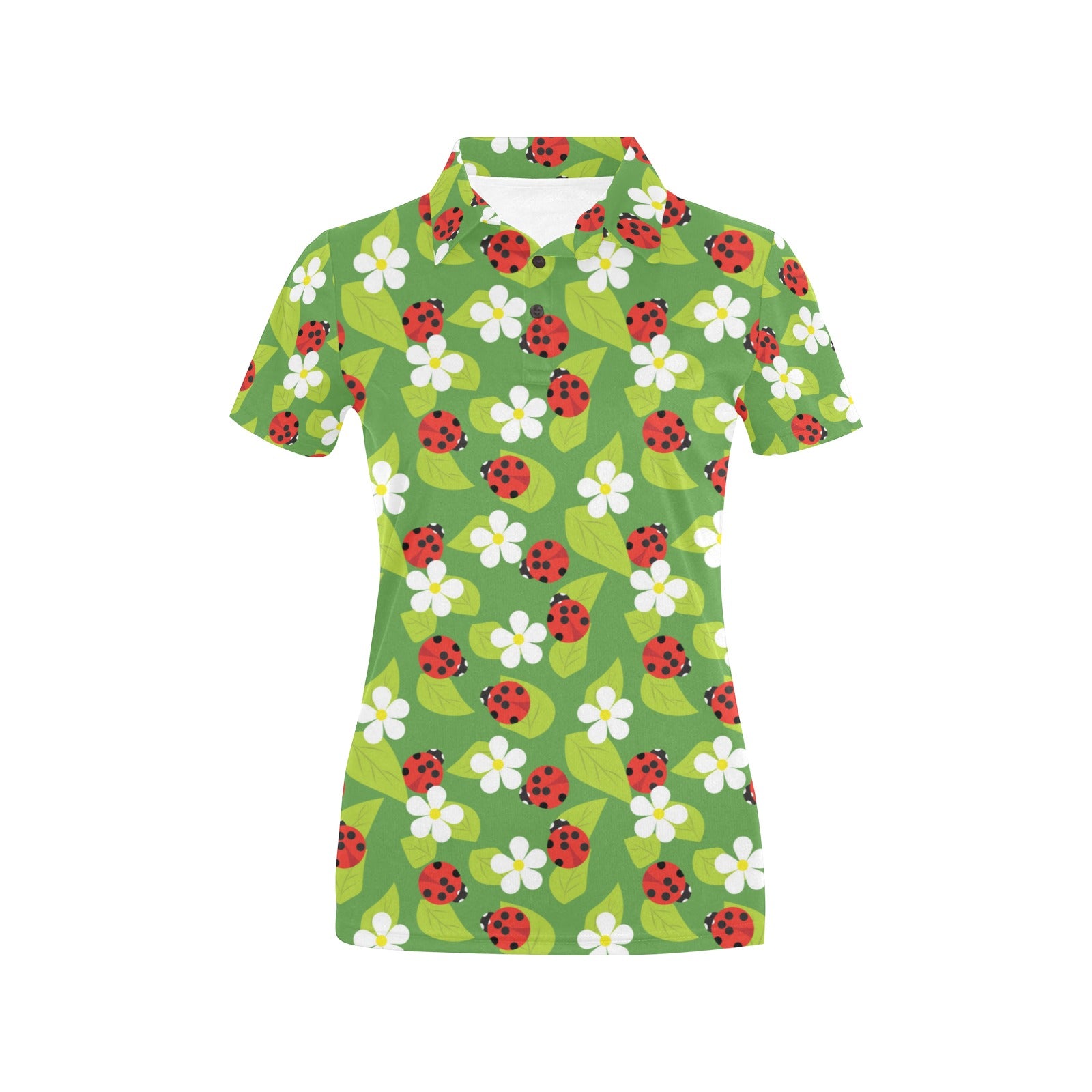 Ladybug Pattern Print Design 01 Women's All Over Print Polo Shirt