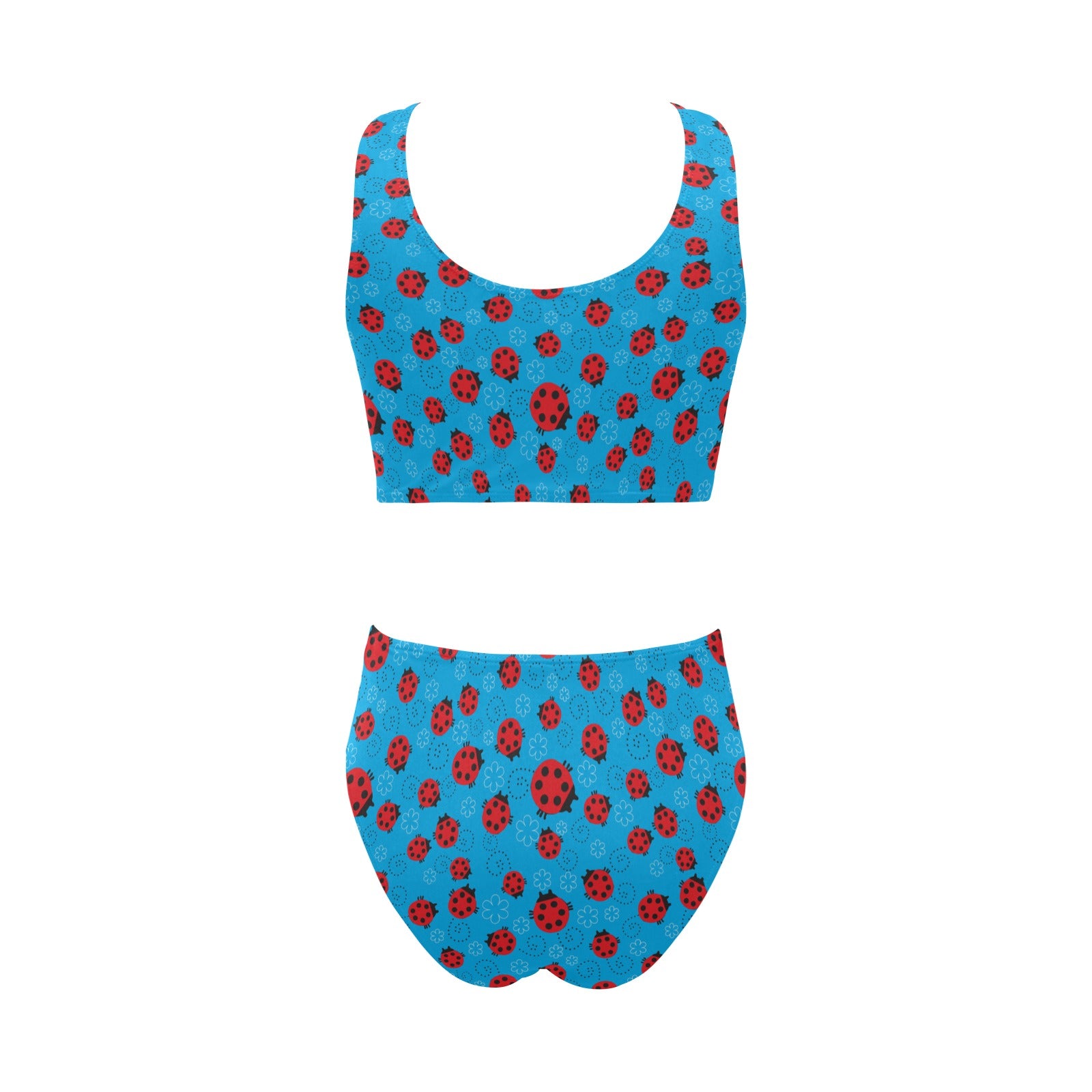 Ladybug Pattern Print Design 02 Chest Bowknot High Waisted Bikini Swimsuit