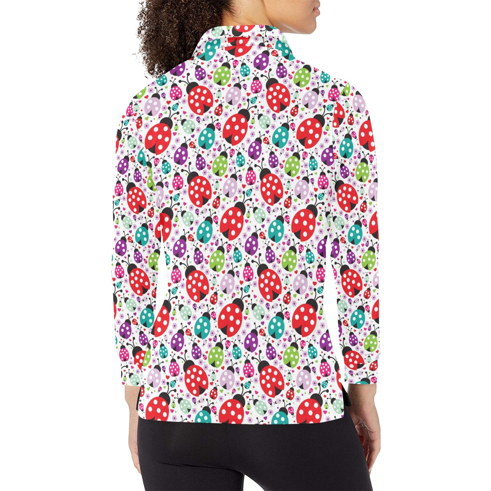 Ladybug Pattern Print Design 03 Women's Long Sleeve Polo Shirt
