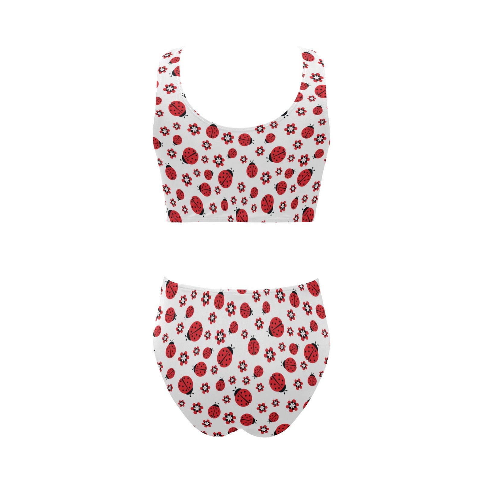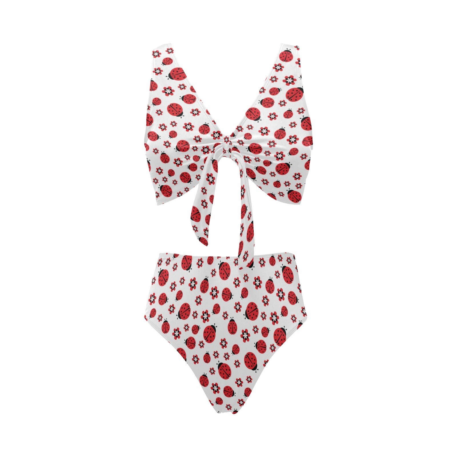 Ladybug Pattern Print Design 04 Chest Bowknot High Waisted Bikini Swimsuit