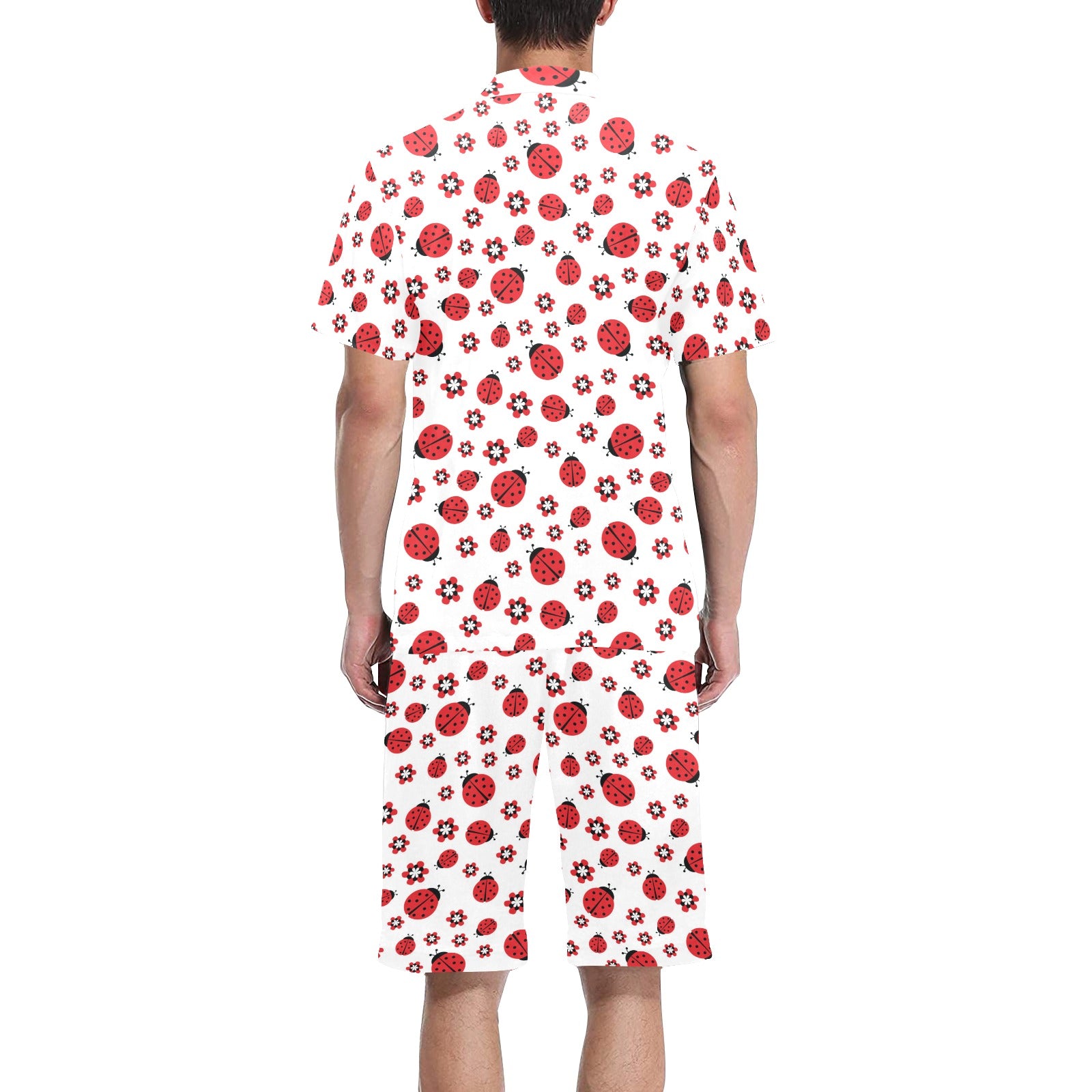 Ladybug Pattern Print Design 04 Men's V-Neck Short Pajama Set