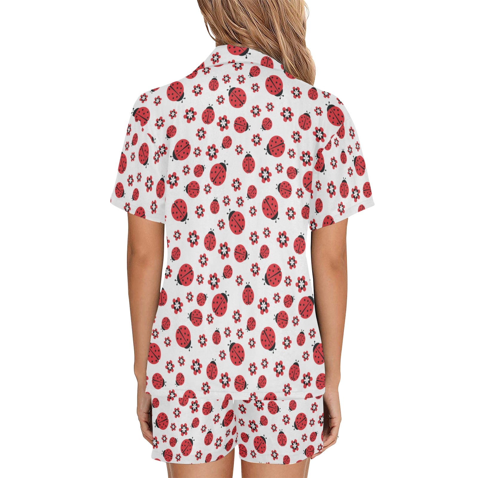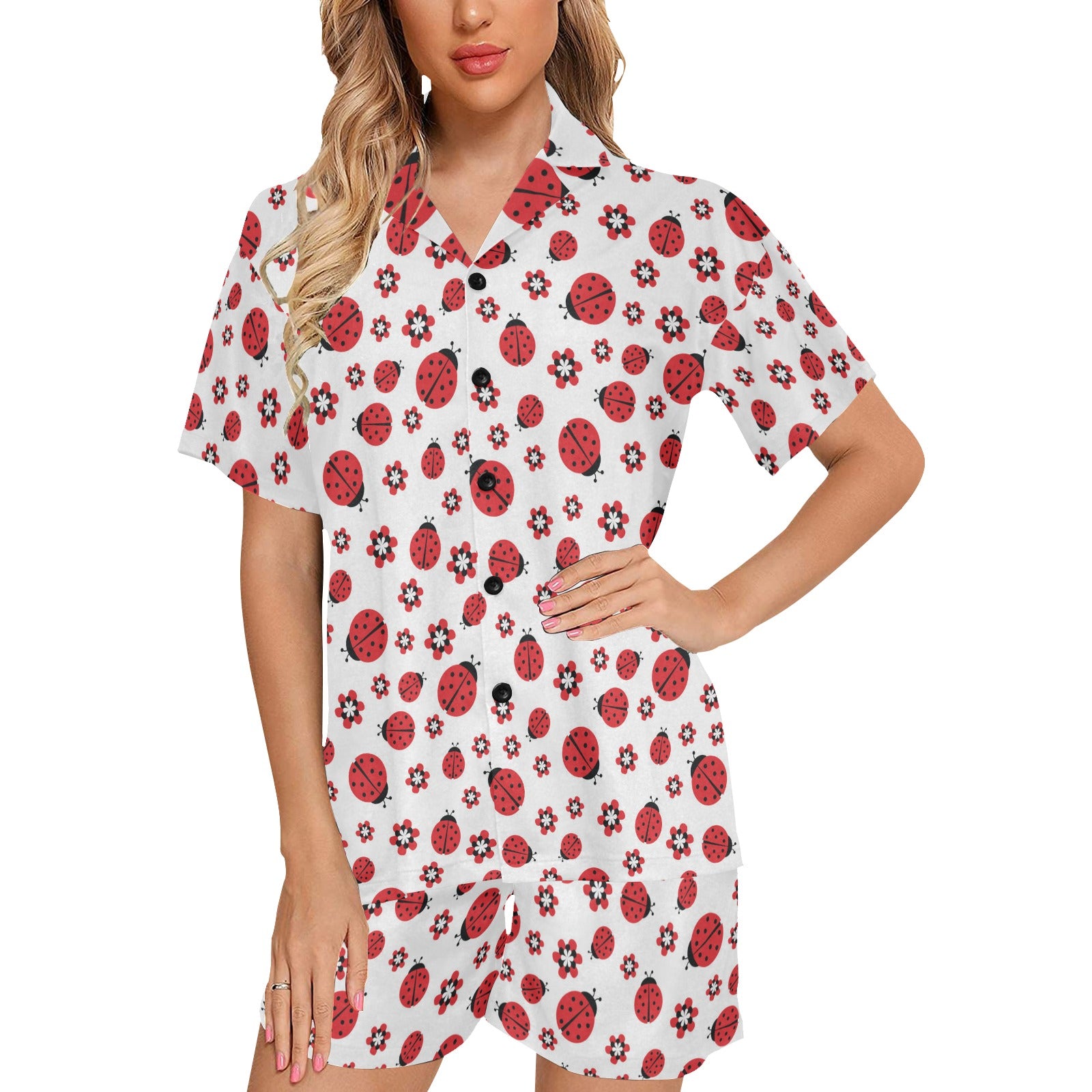 Ladybug Pattern Print Design 04 Women's V-Neck Short Pajama Set