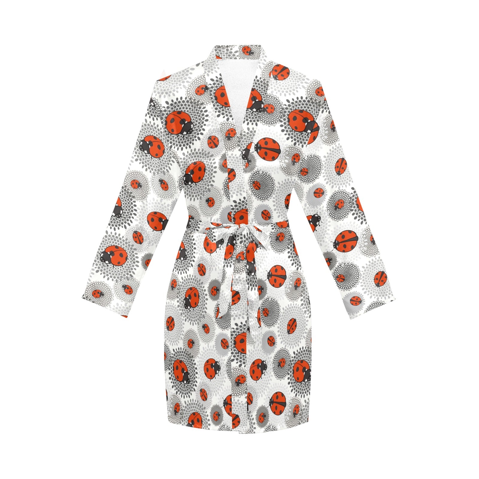 Ladybug Pattern Print Design 05 Women's Long Sleeve Belted Night Robe