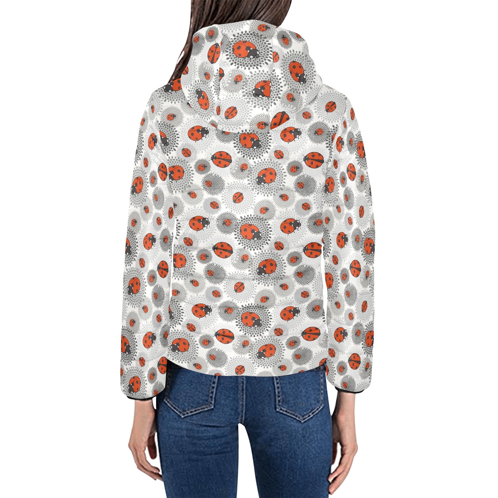 Ladybug Pattern Print Design 05 Women's Padded Hooded Jacket