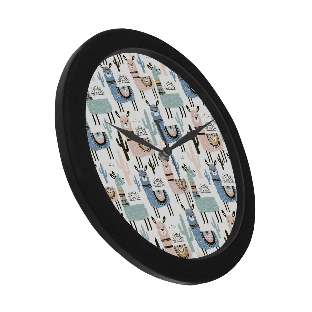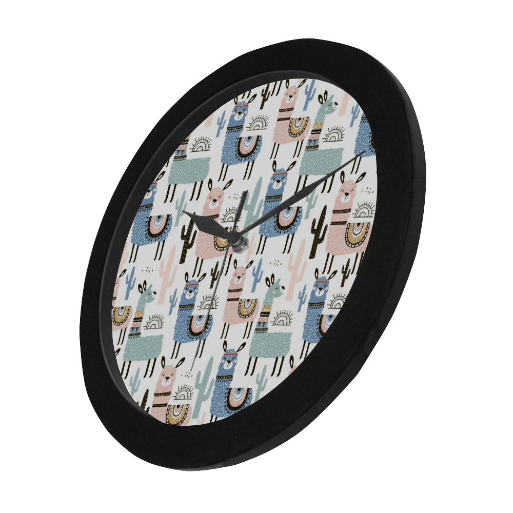 lama Alpaca cactus hand drawn pattern Elegant Black Wall Clock