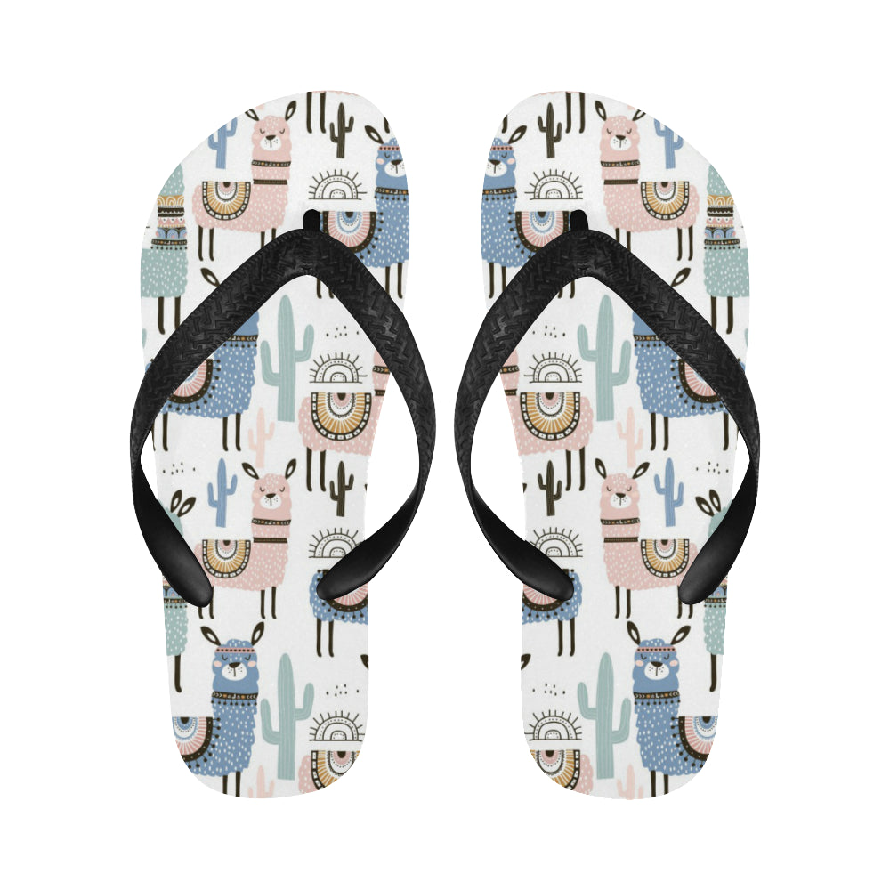 lama Alpaca cactus hand drawn pattern Unisex Flip Flops