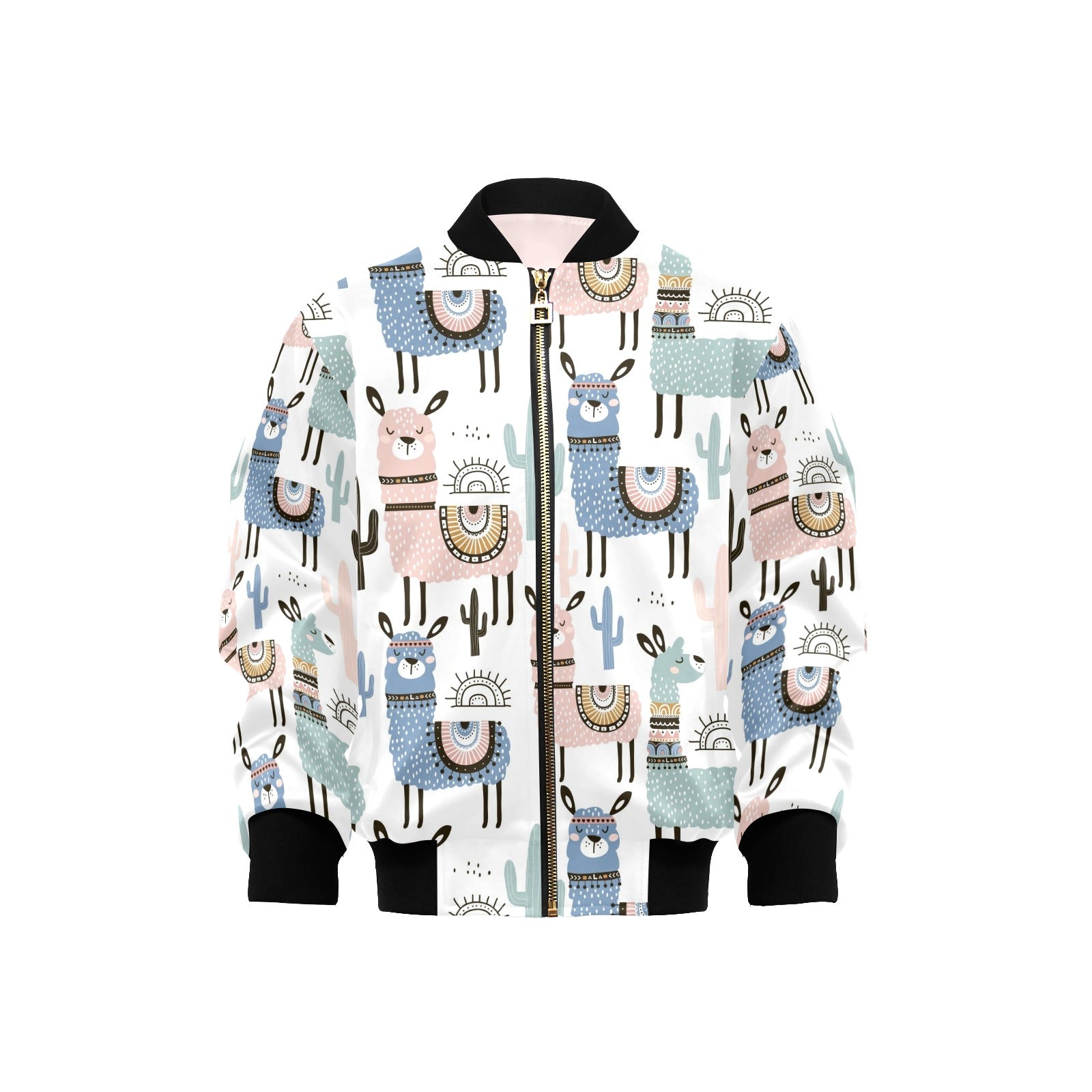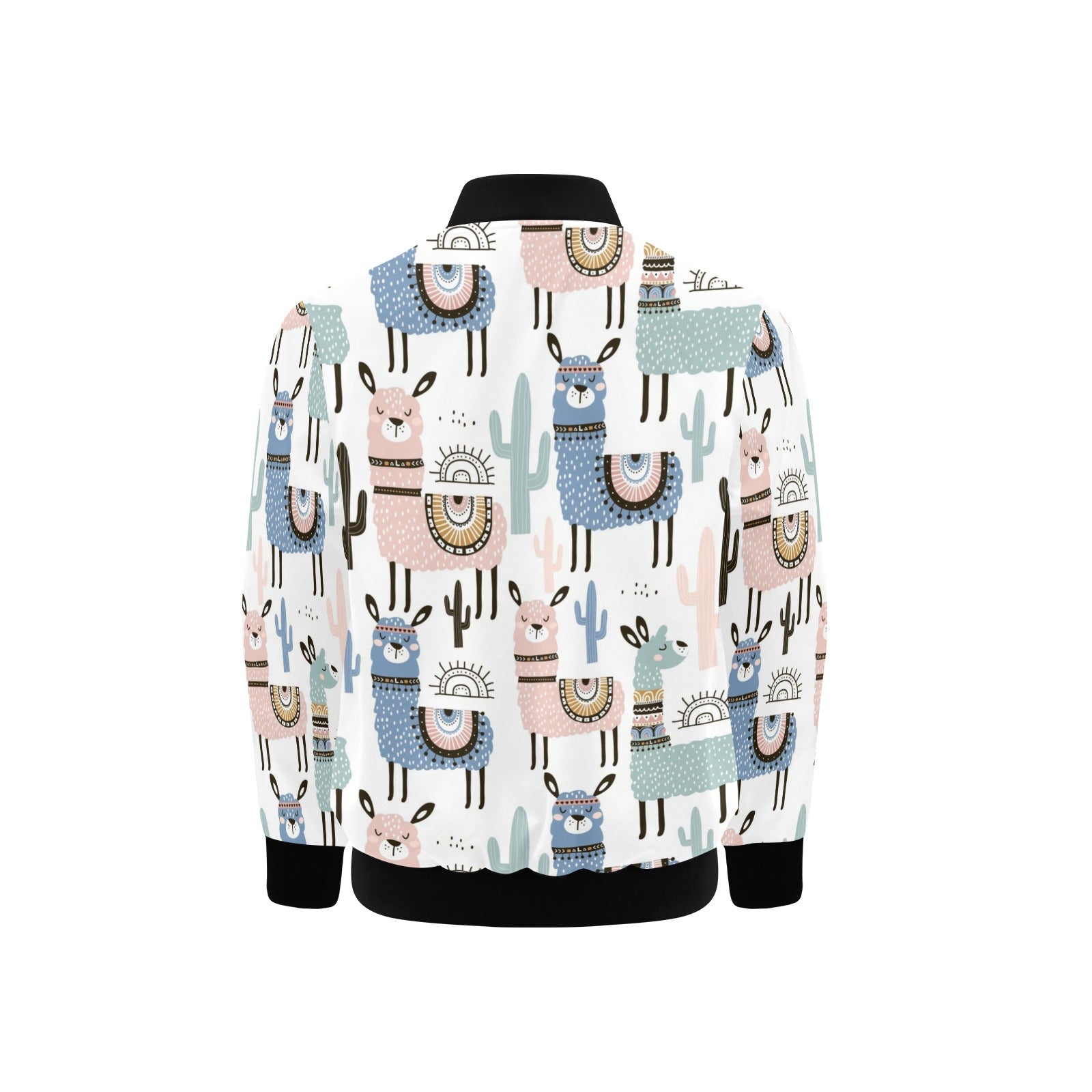lama Alpaca cactus hand drawn pattern Kids' Boys' Girls' Bomber Jacket