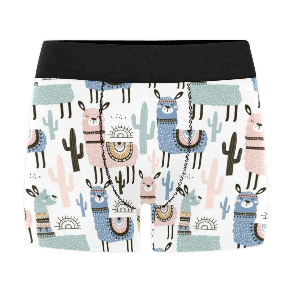 lama Alpaca cactus hand drawn pattern Men's All Over Print Boxer Briefs Men's Underwear