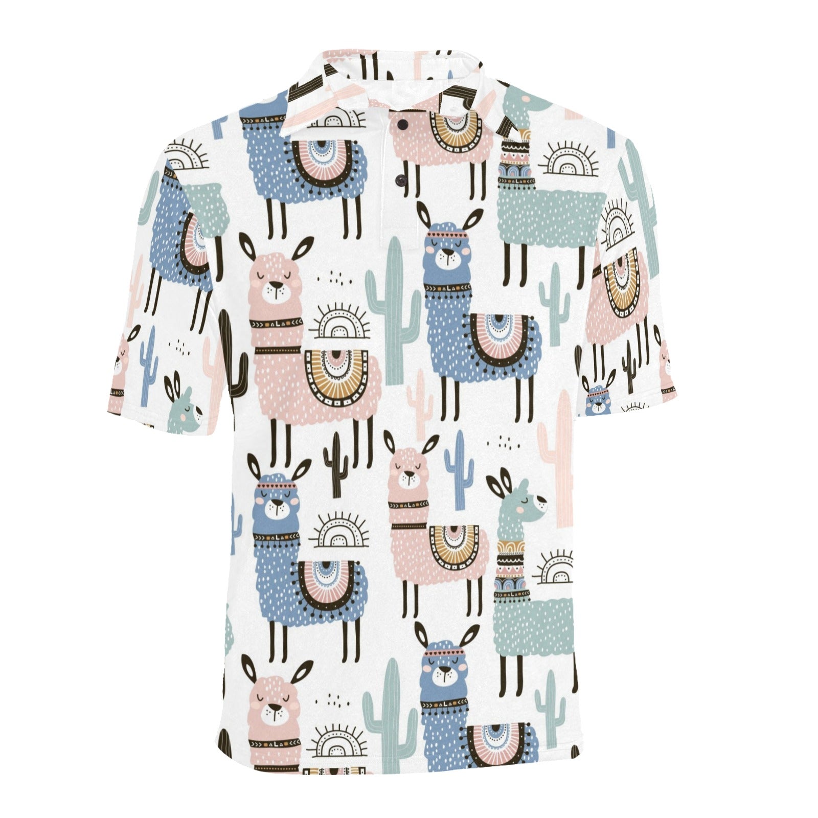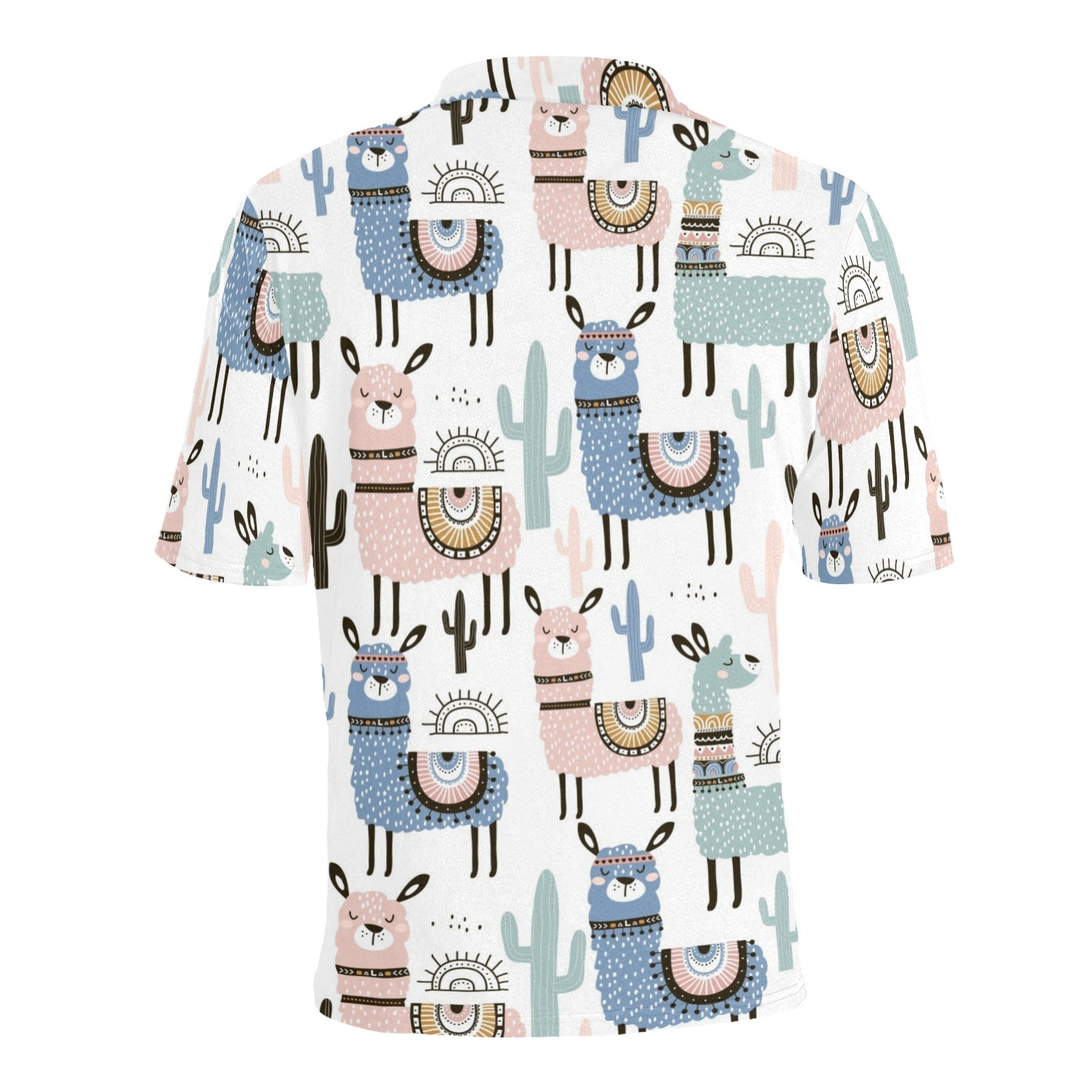lama Alpaca cactus hand drawn pattern Men's All Over Print Polo Shirt