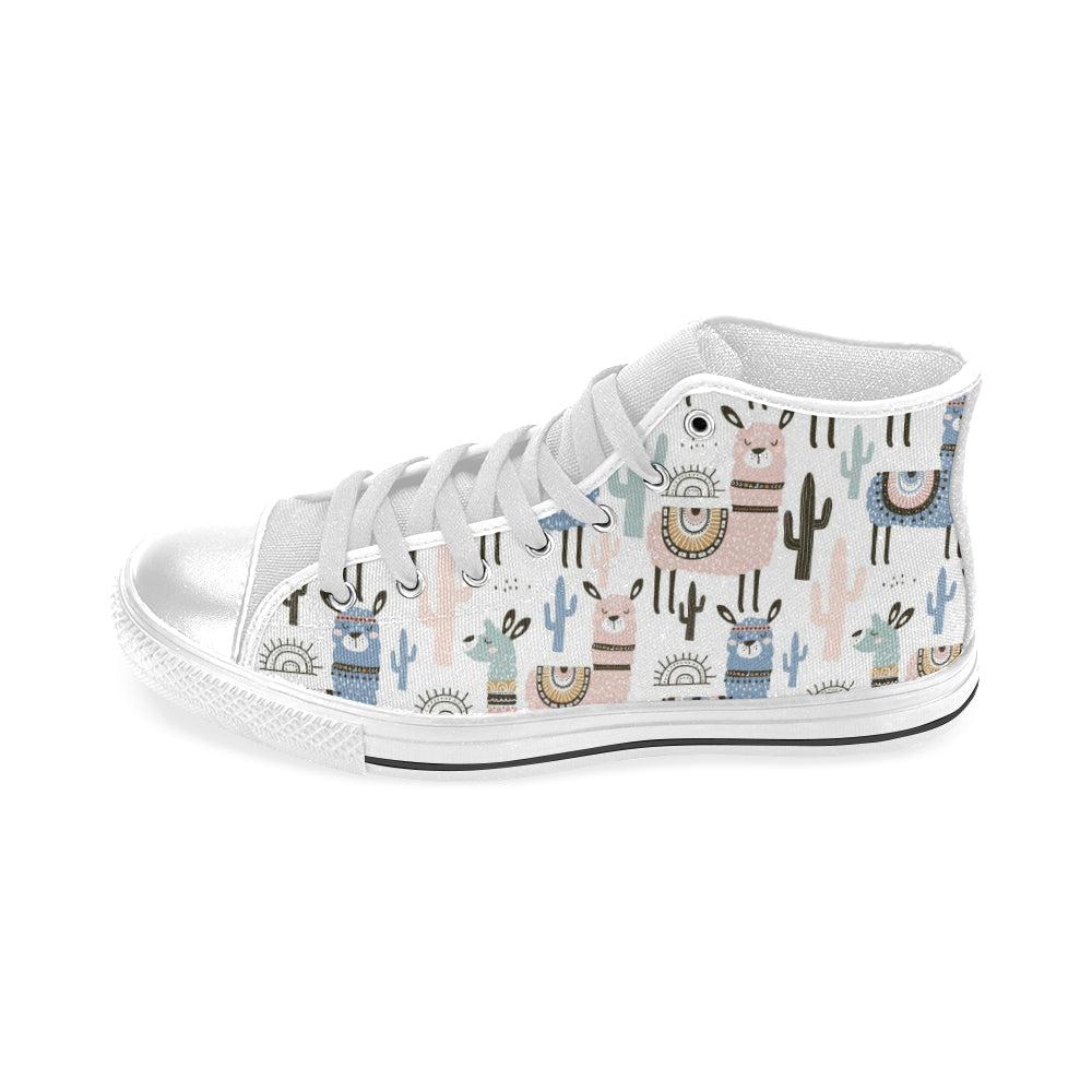 lama Alpaca cactus hand drawn pattern Men's High Top Canvas Shoes White