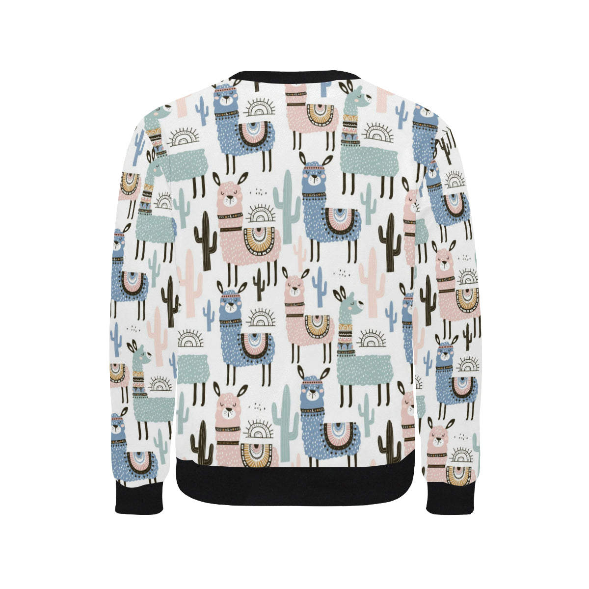 lama Alpaca cactus hand drawn pattern Men's Crew Neck Sweatshirt
