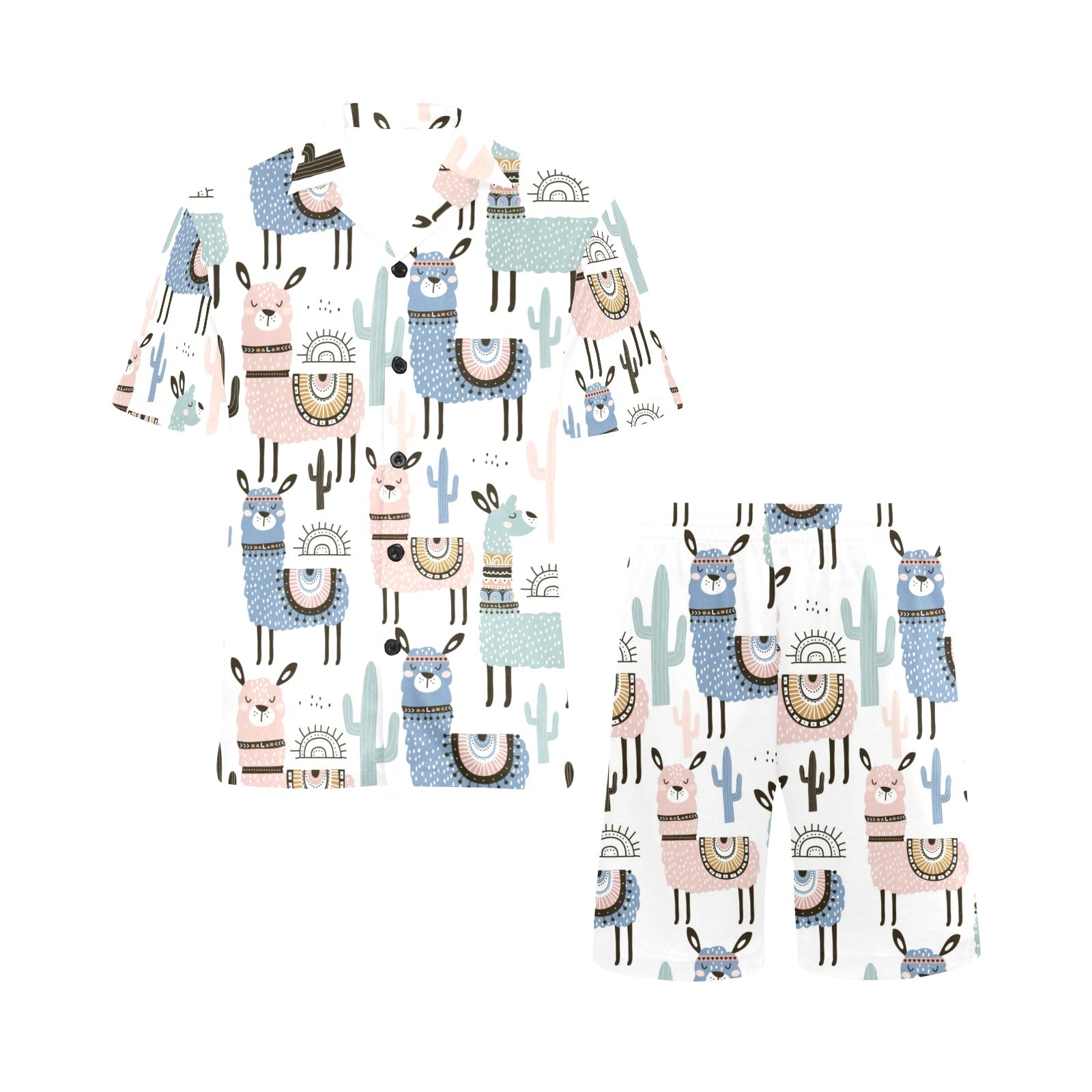 lama Alpaca cactus hand drawn pattern Men's V-Neck Short Pajama Set