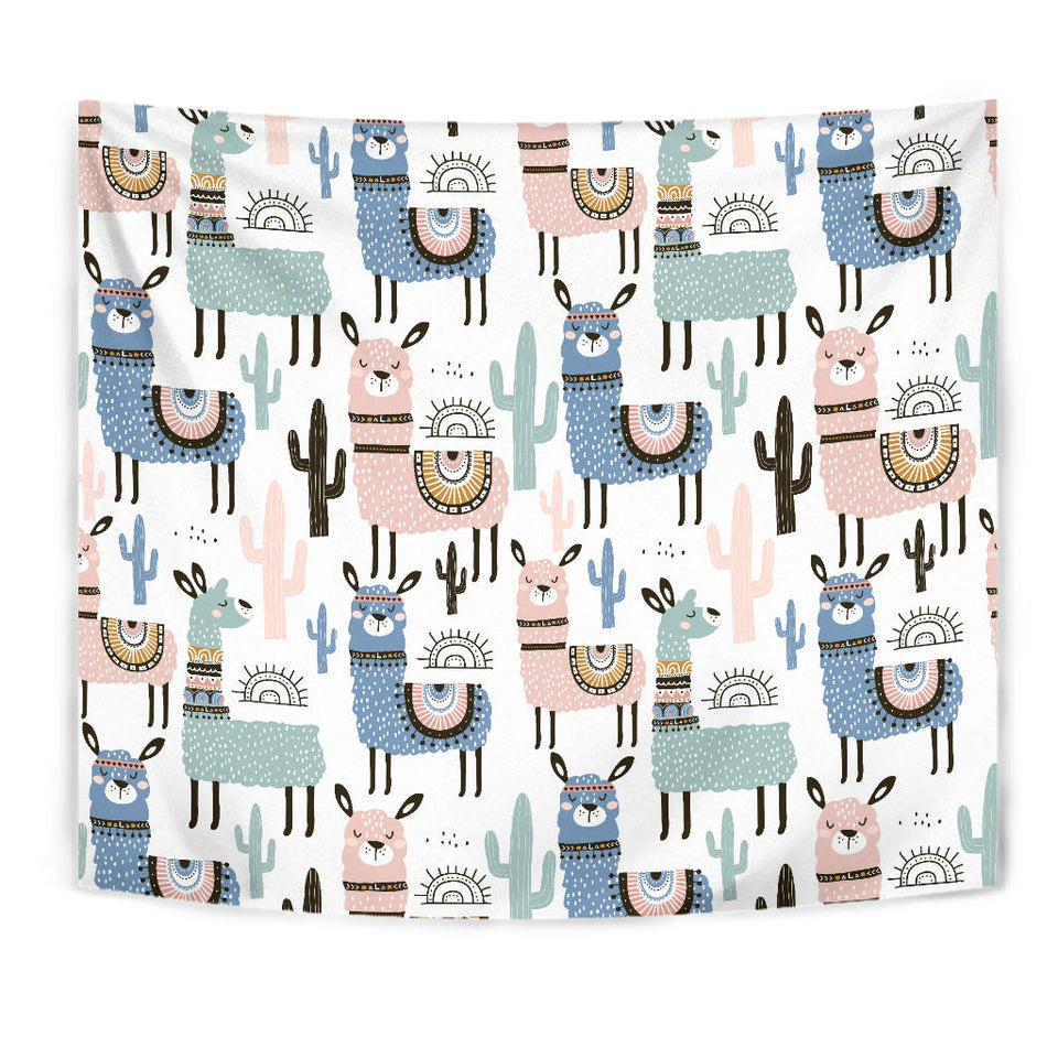 Lama Alpaca Cactus Hand Drawn Pattern Wall Tapestry