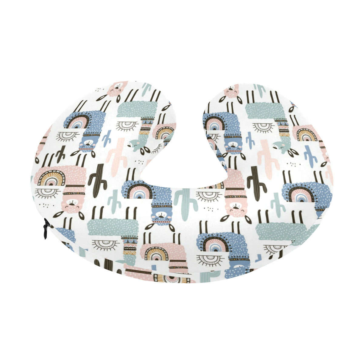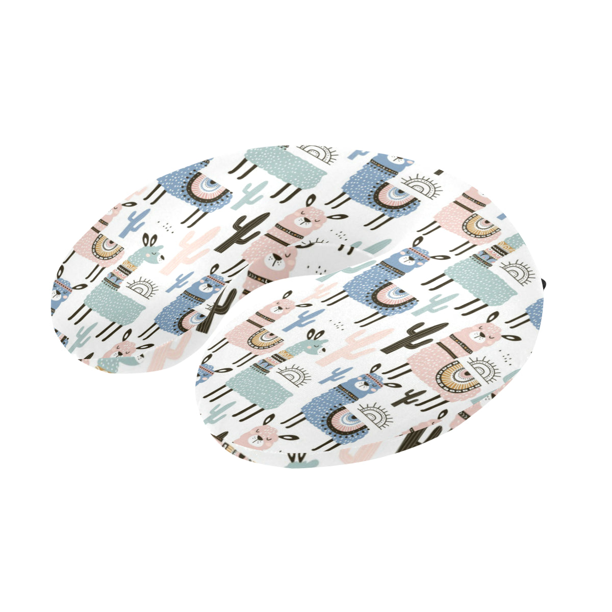 lama Alpaca cactus hand drawn pattern U-Shaped Travel Neck Pillow