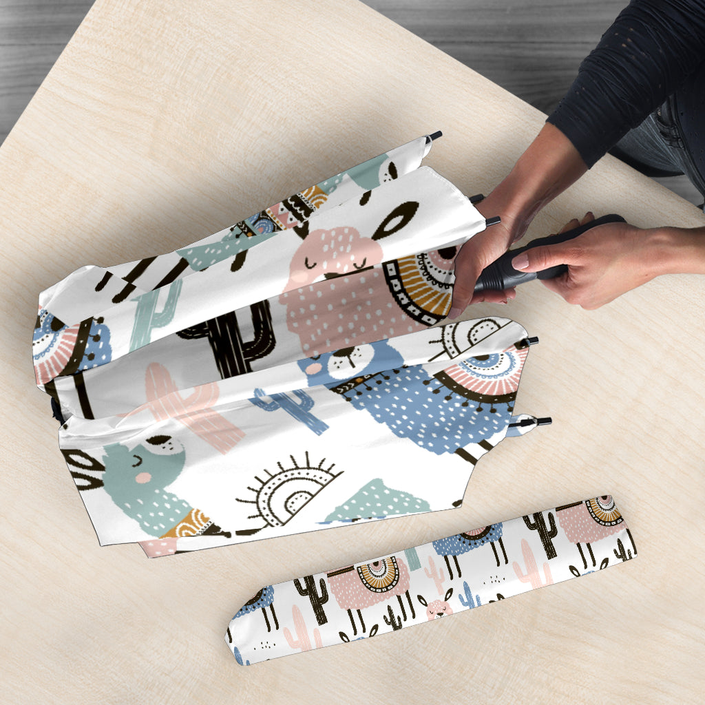Lama Alpaca Cactus Hand Drawn Pattern Umbrella