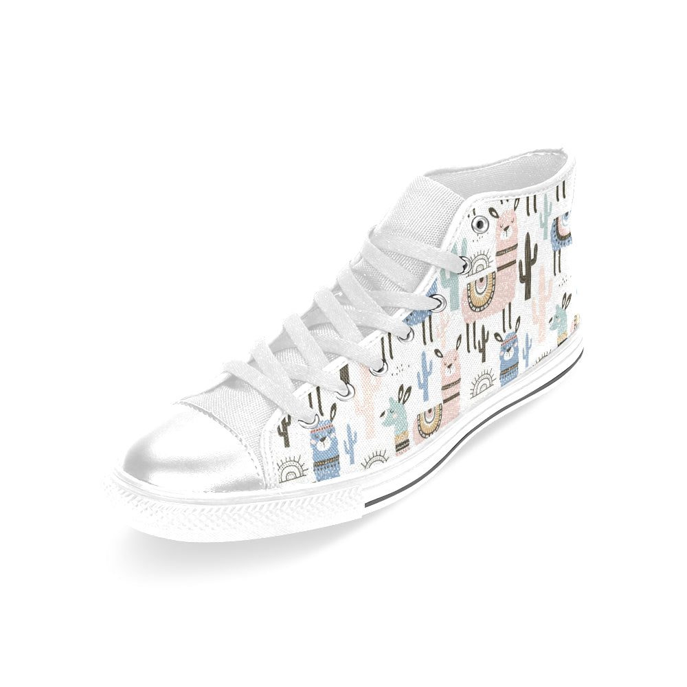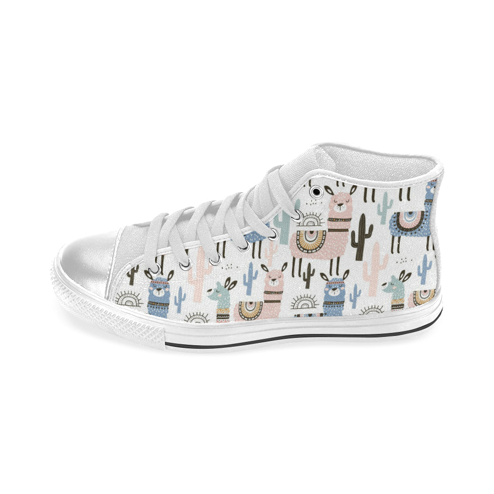 lama Alpaca cactus hand drawn pattern Women's High Top Canvas Shoes White