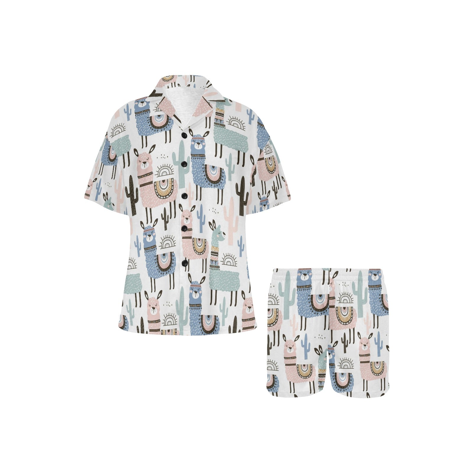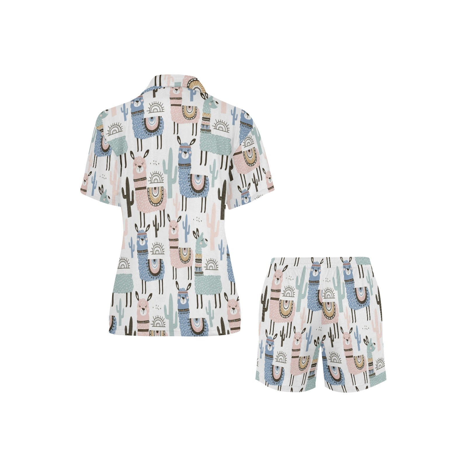 lama Alpaca cactus hand drawn pattern Women's V-Neck Short Pajama Set