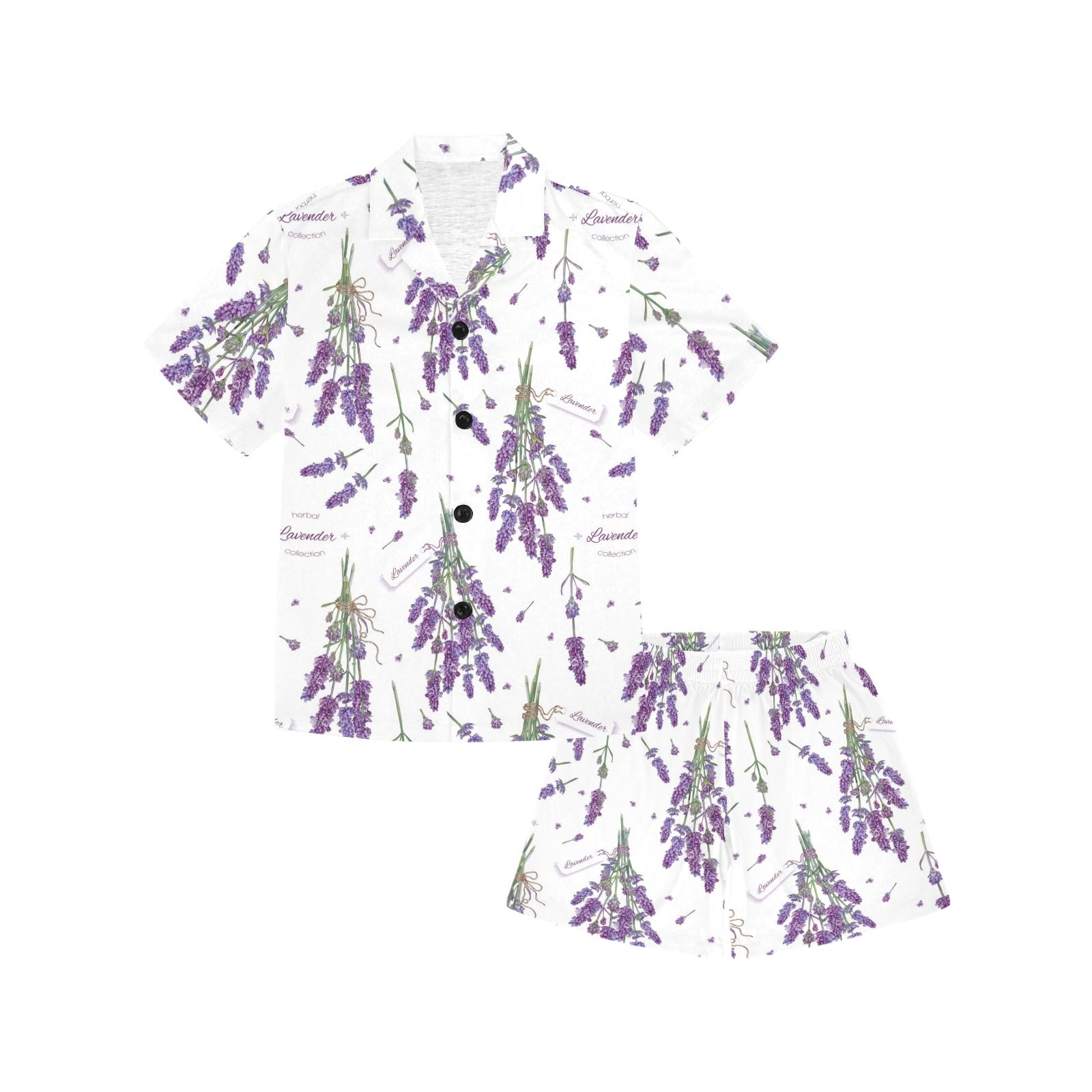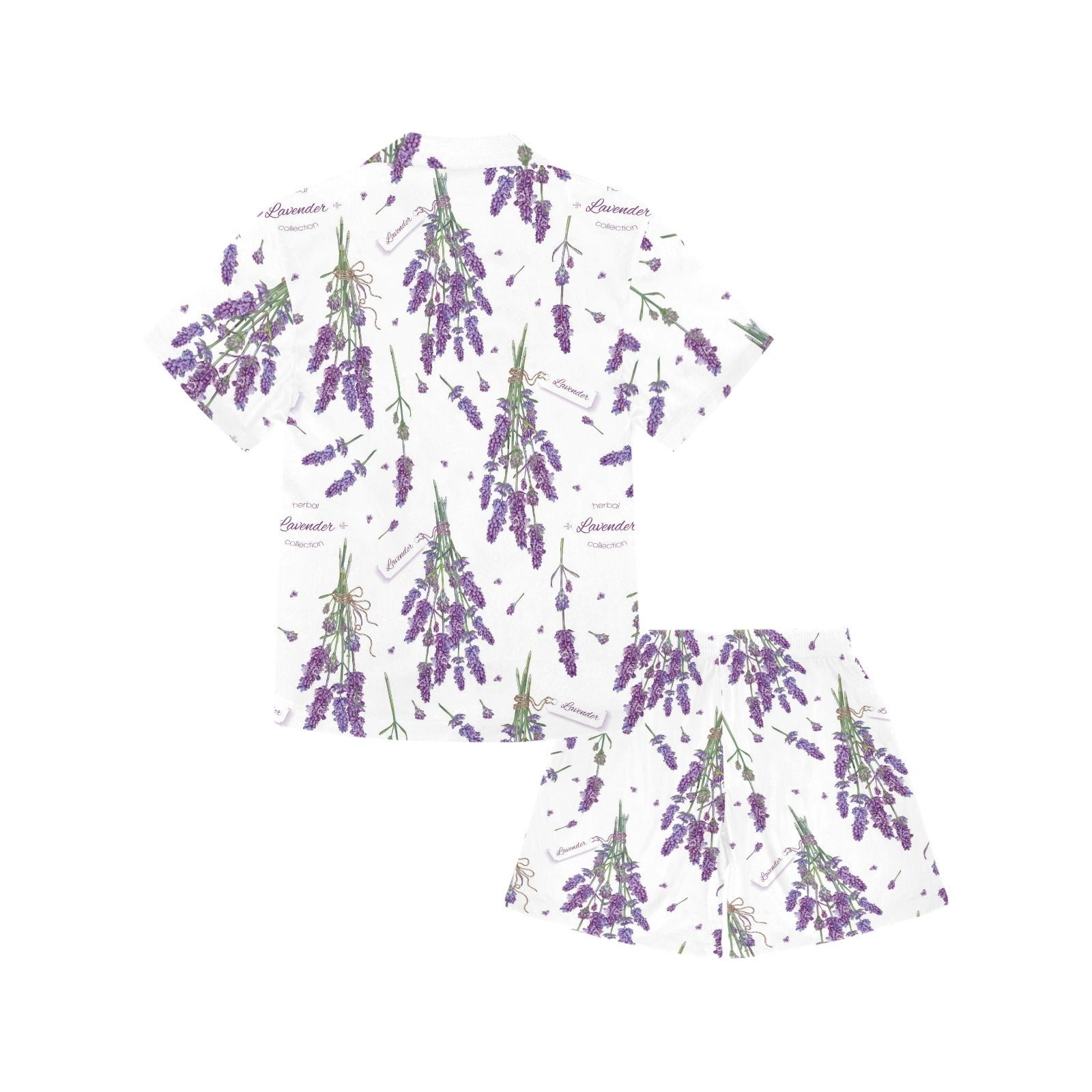 lavender flower design pattern Kids' Boys' Girls' V-Neck Short Pajama Set