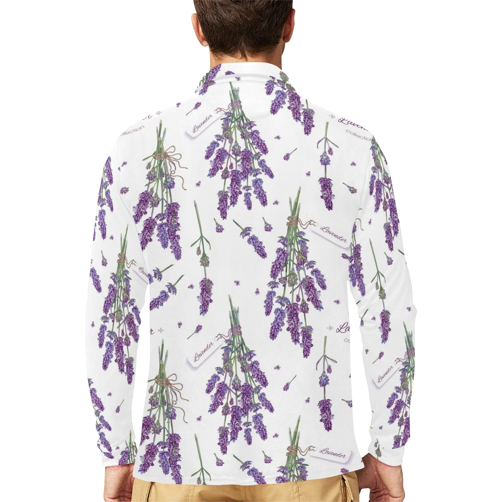 lavender flower design pattern Men's Long Sleeve Polo Shirt
