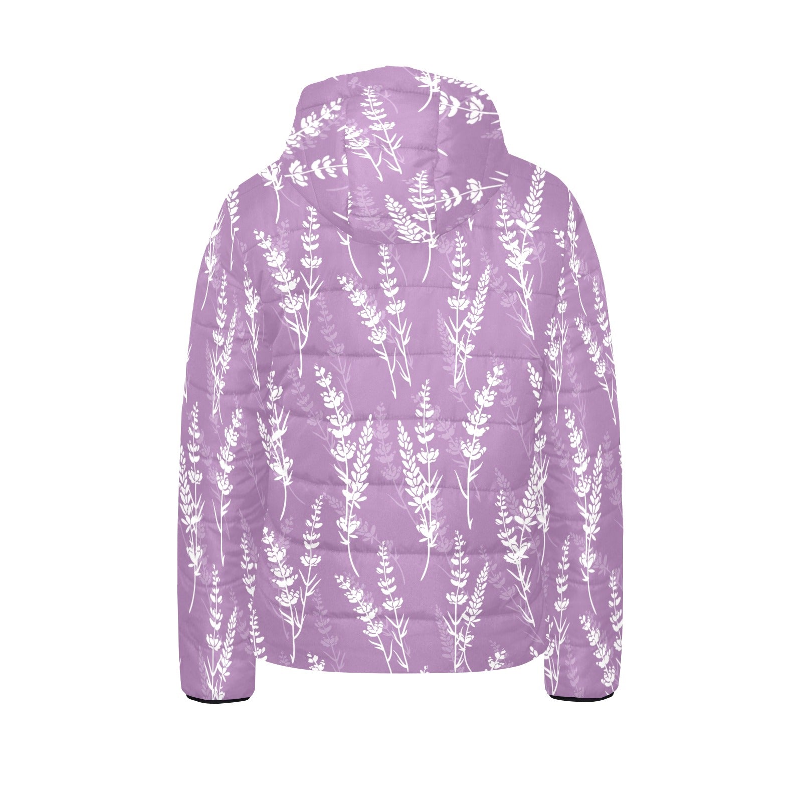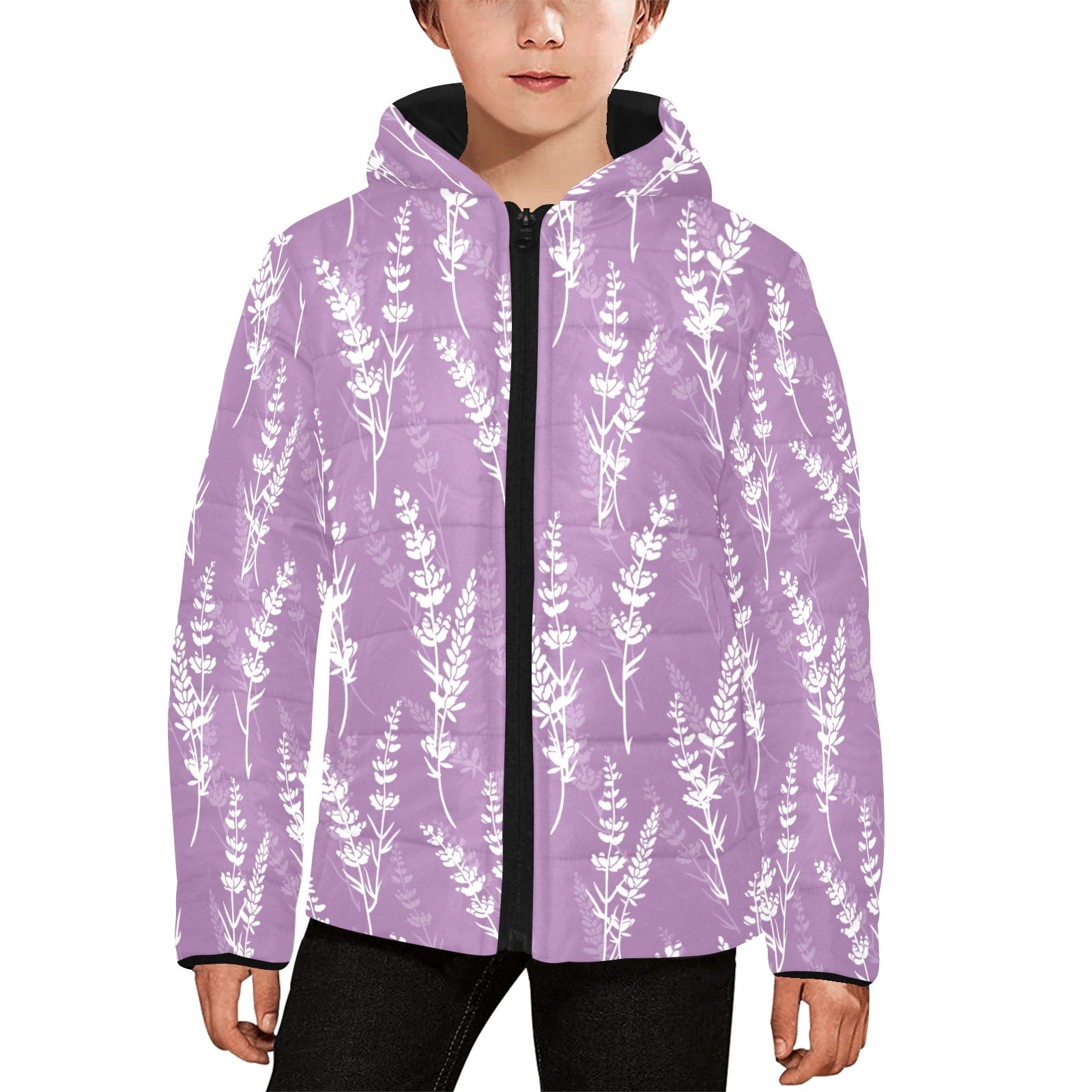 Lavender flowers purple pattern Kids' Boys' Girls' Padded Hooded Jacket