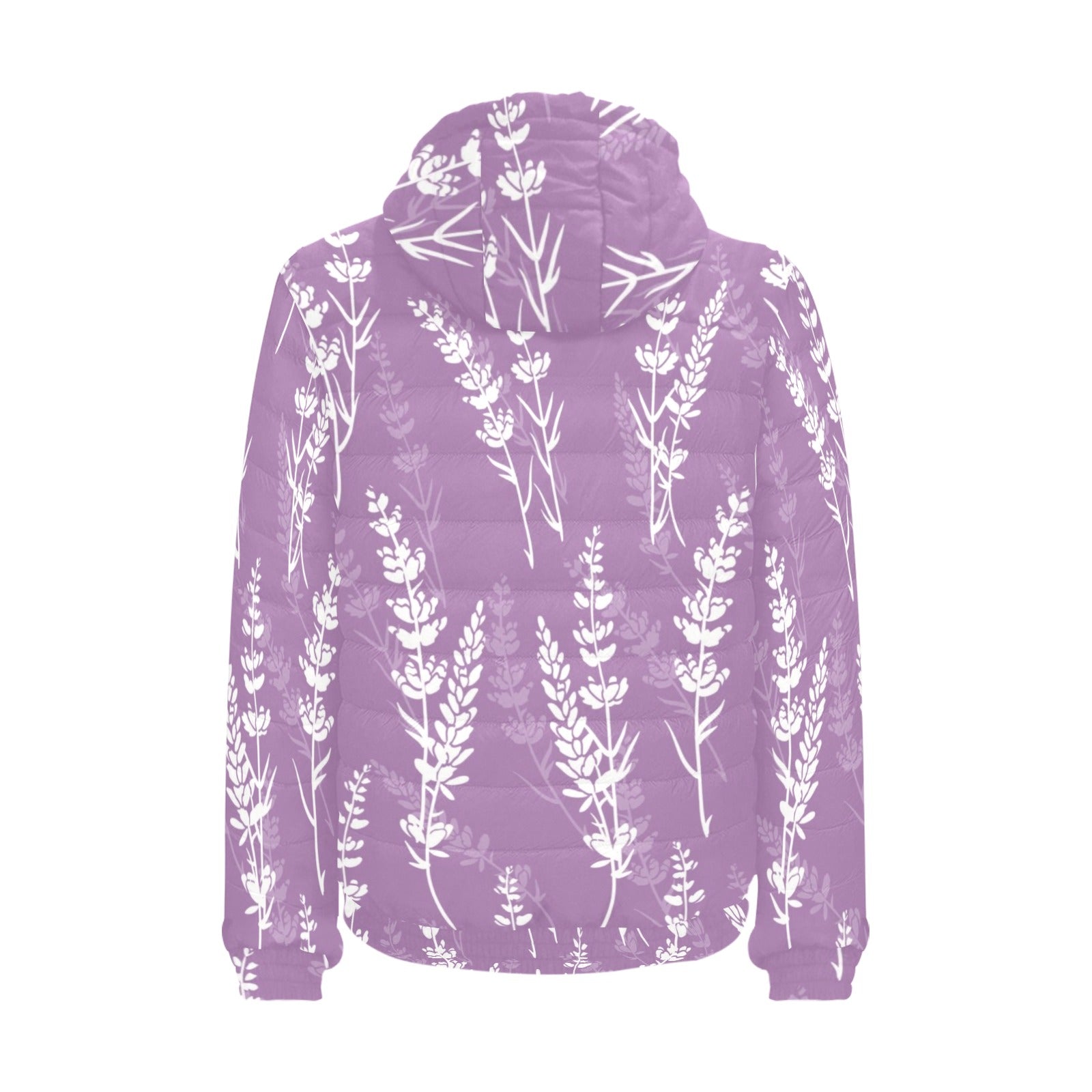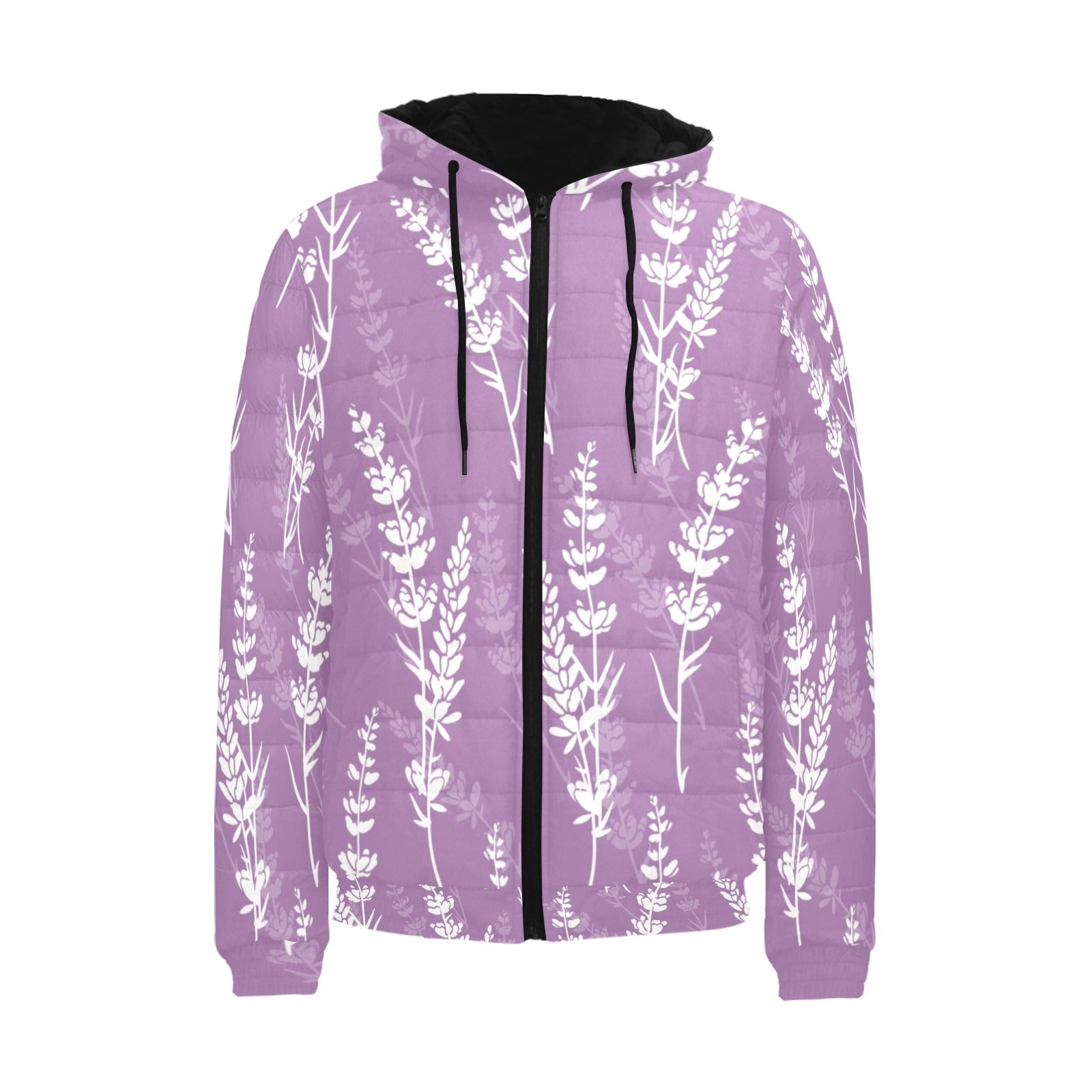 Lavender flowers purple pattern Men's Padded Hooded Jacket