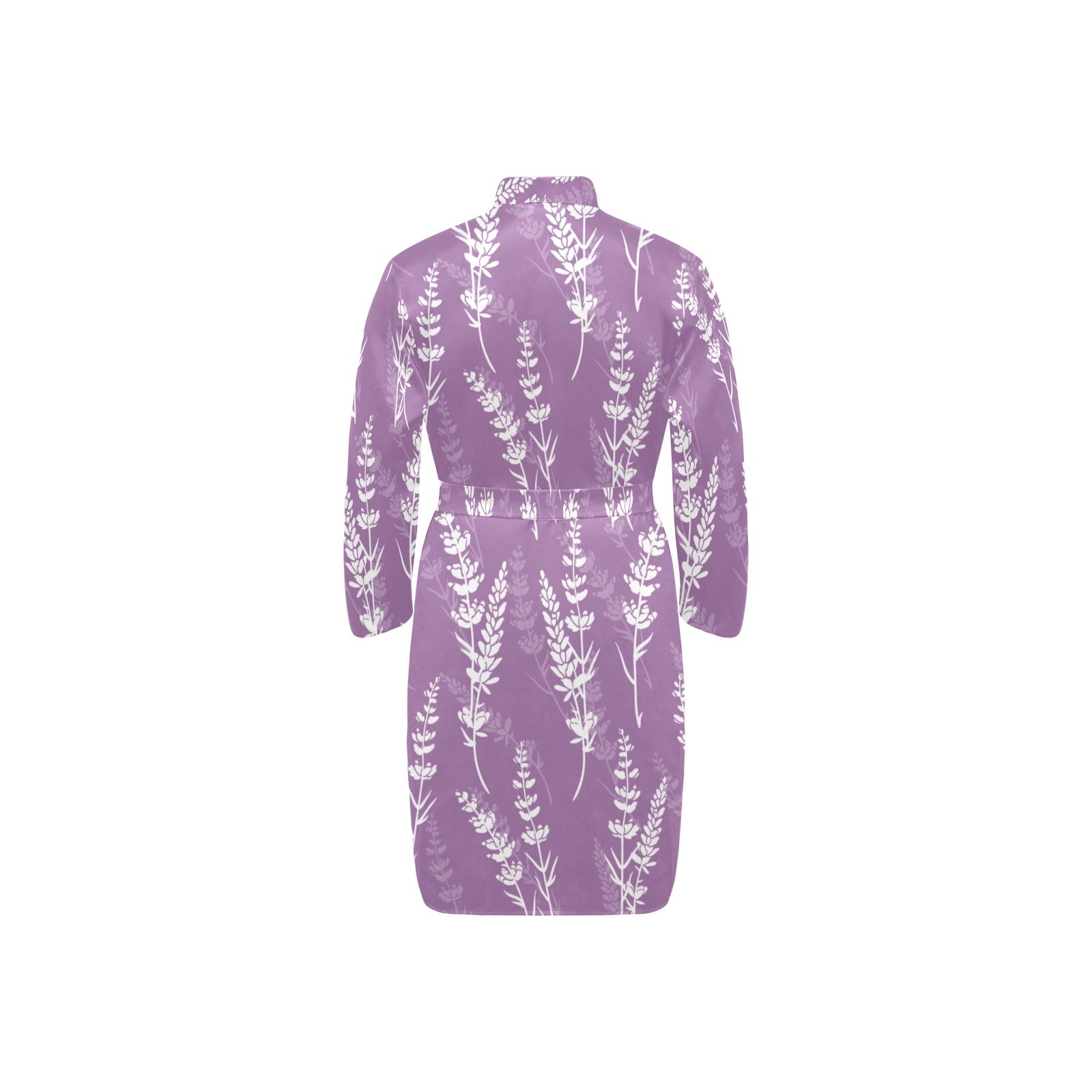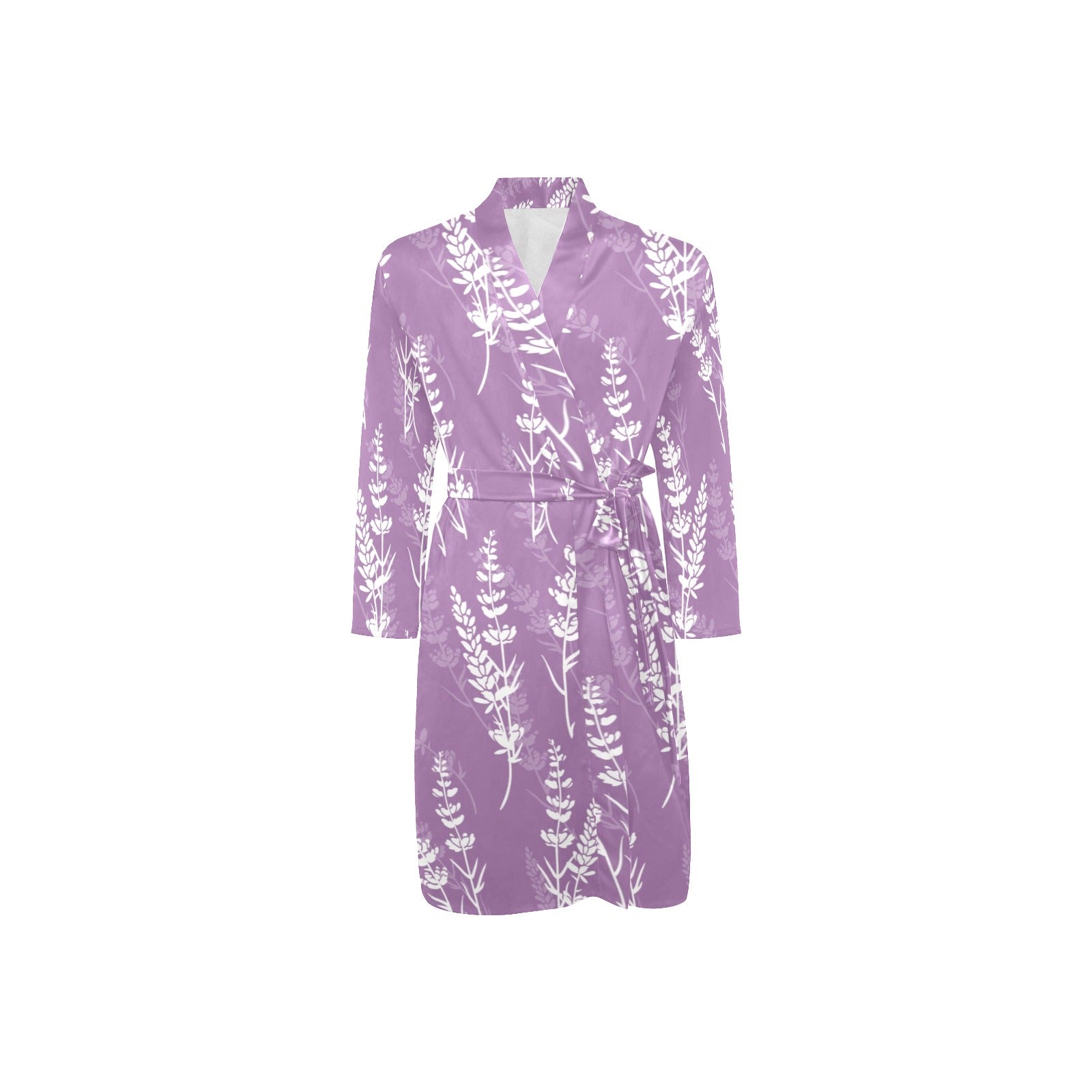 Lavender flowers purple pattern Men's Long Sleeve Belted Night Robe