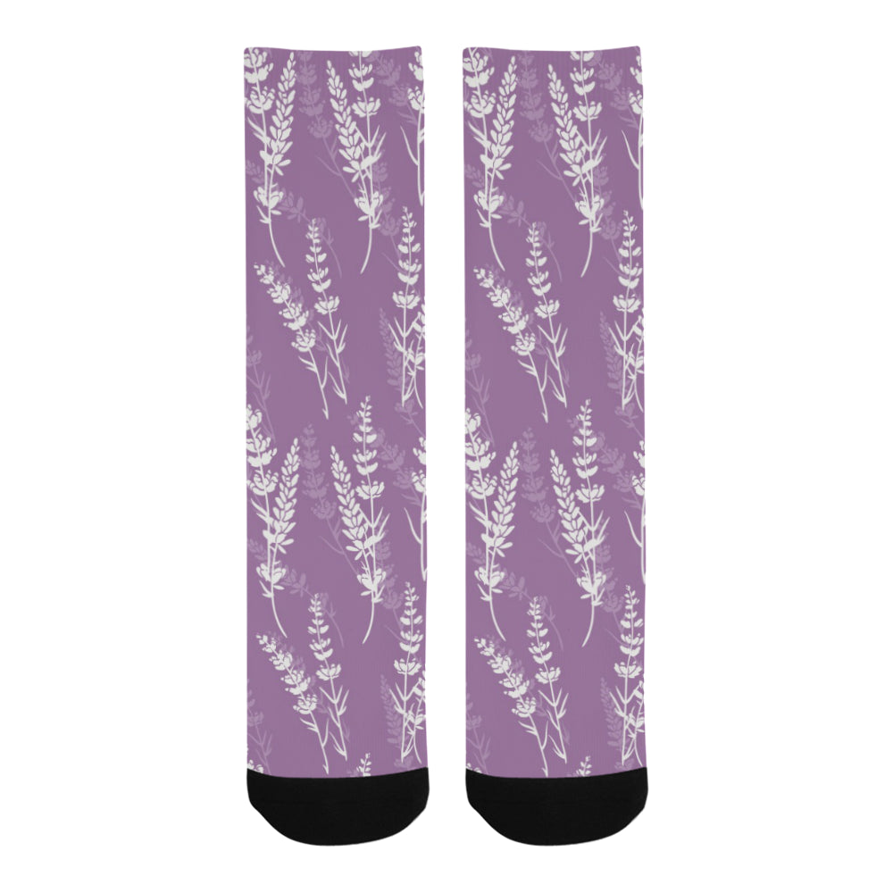 Lavender flowers purple pattern Crew Socks are uniqued design and limited item. It made to order, hand printed, and sewn with love in our factory.
