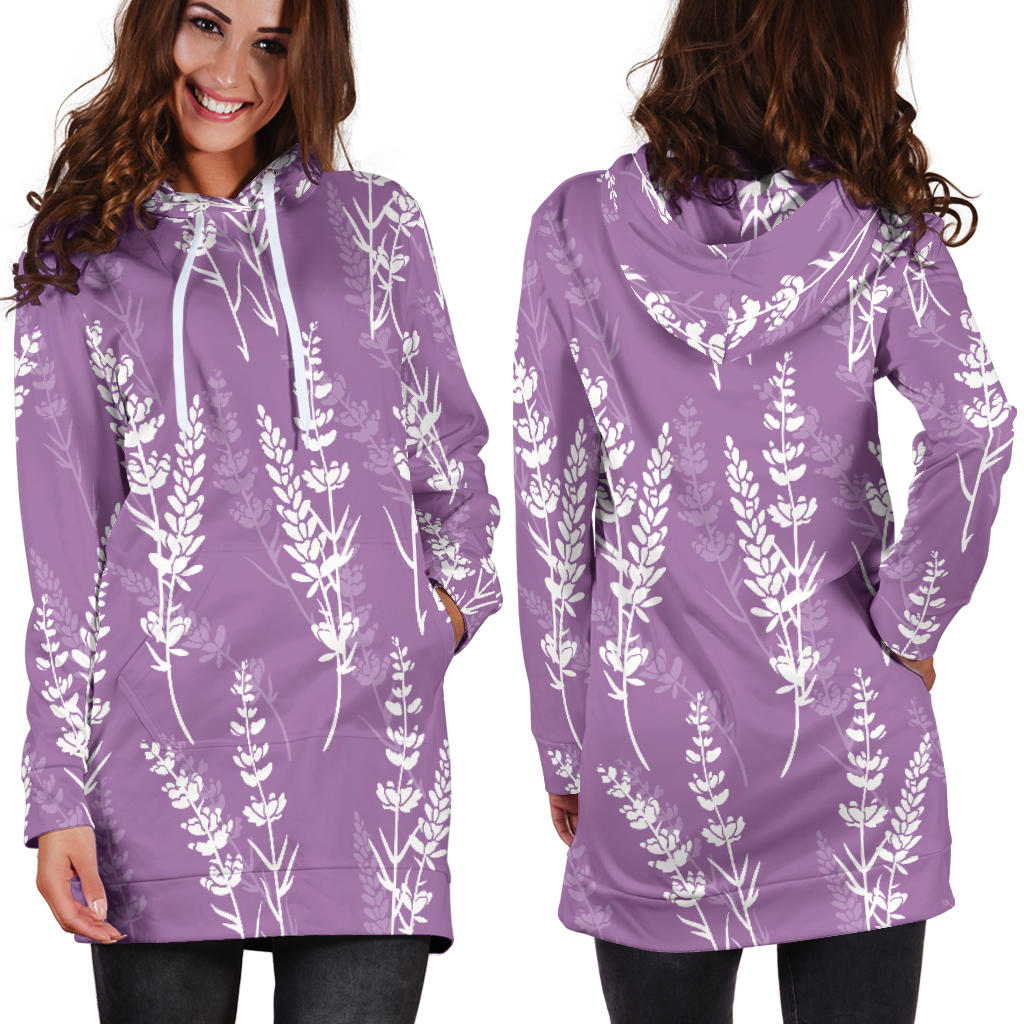 Lavender Flowers Purple Pattern Women'S Hoodie Dress
