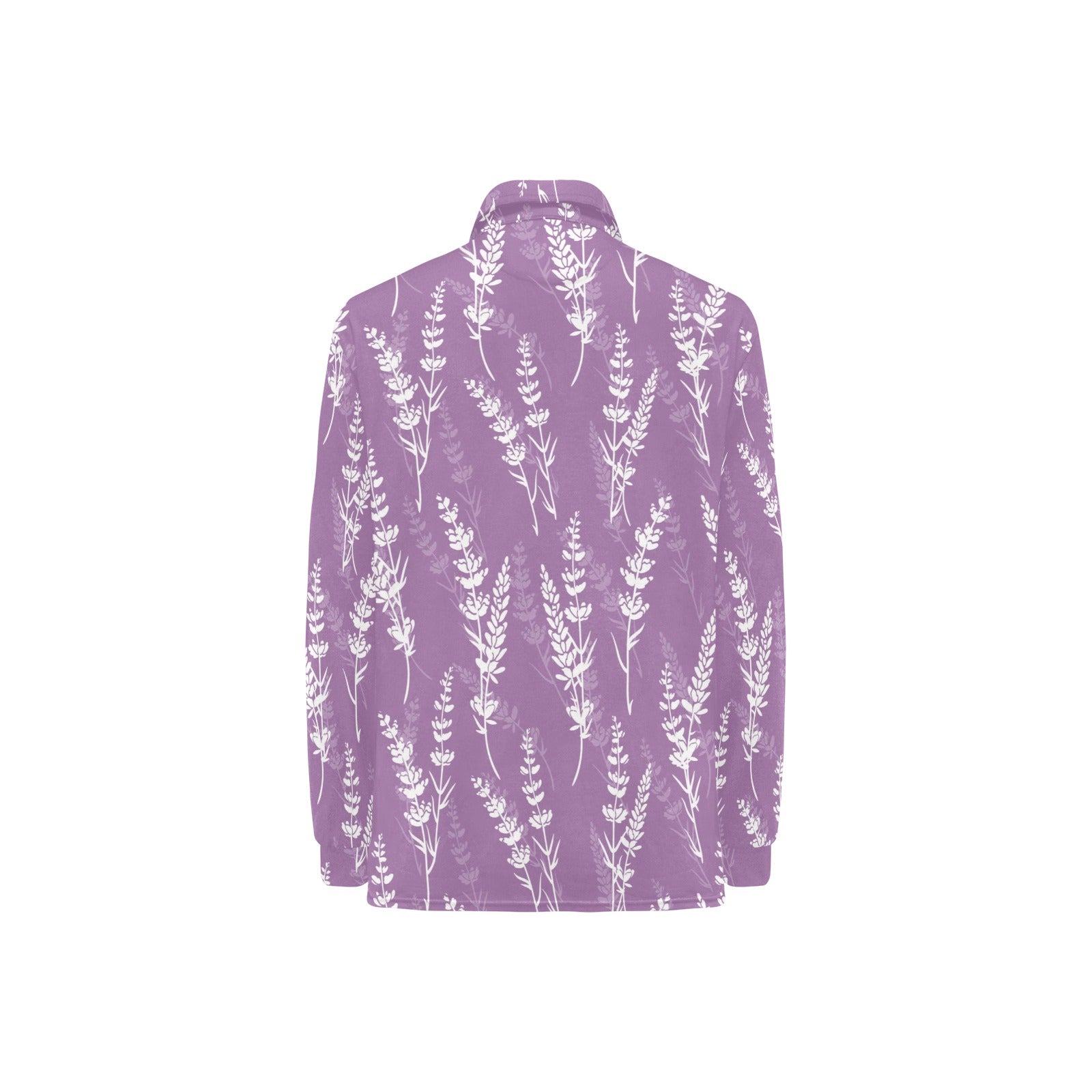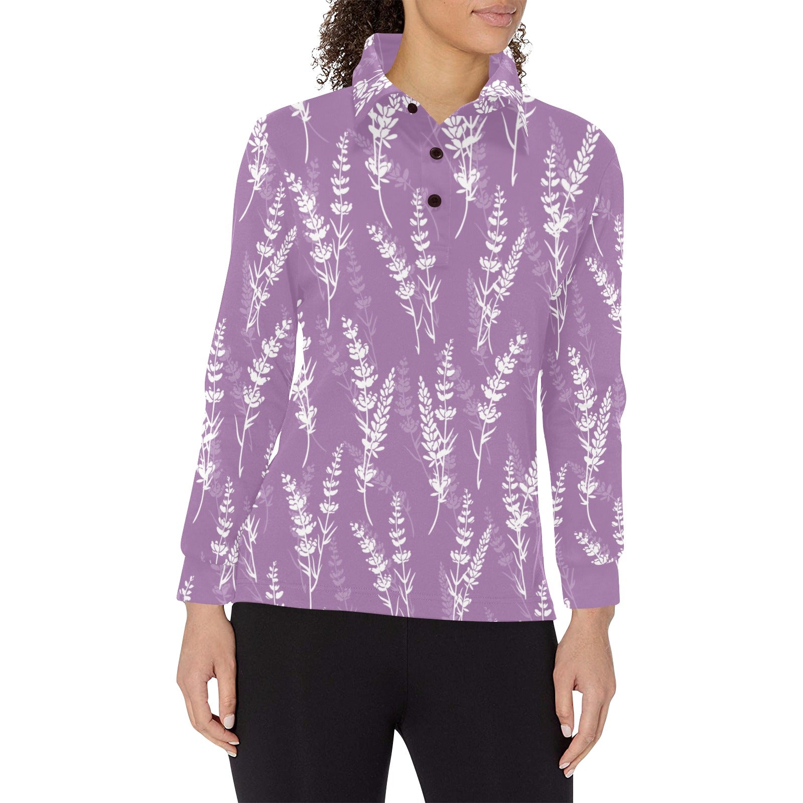 Lavender flowers purple pattern Women's Long Sleeve Polo Shirt