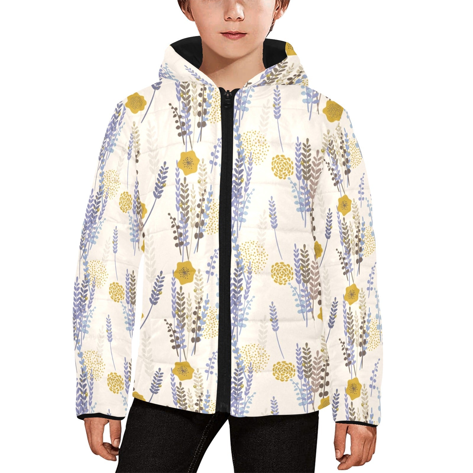 Lavender modern pattern blackground Kids' Boys' Girls' Padded Hooded Jacket