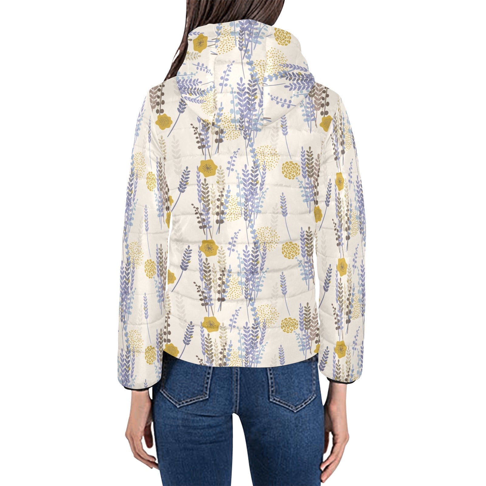Lavender modern pattern blackground Women's Padded Hooded Jacket