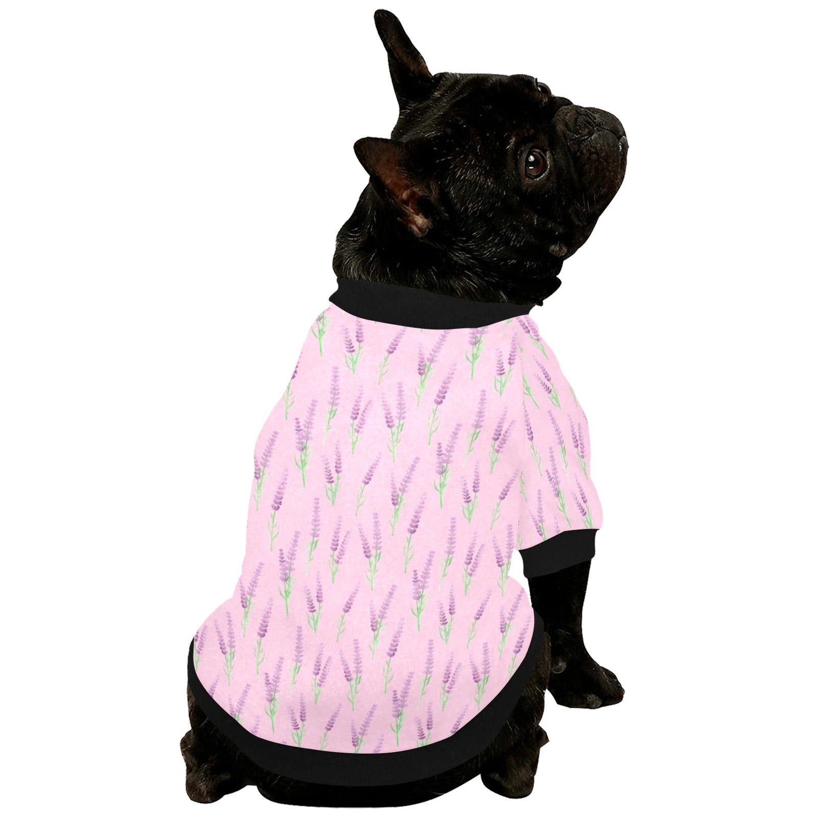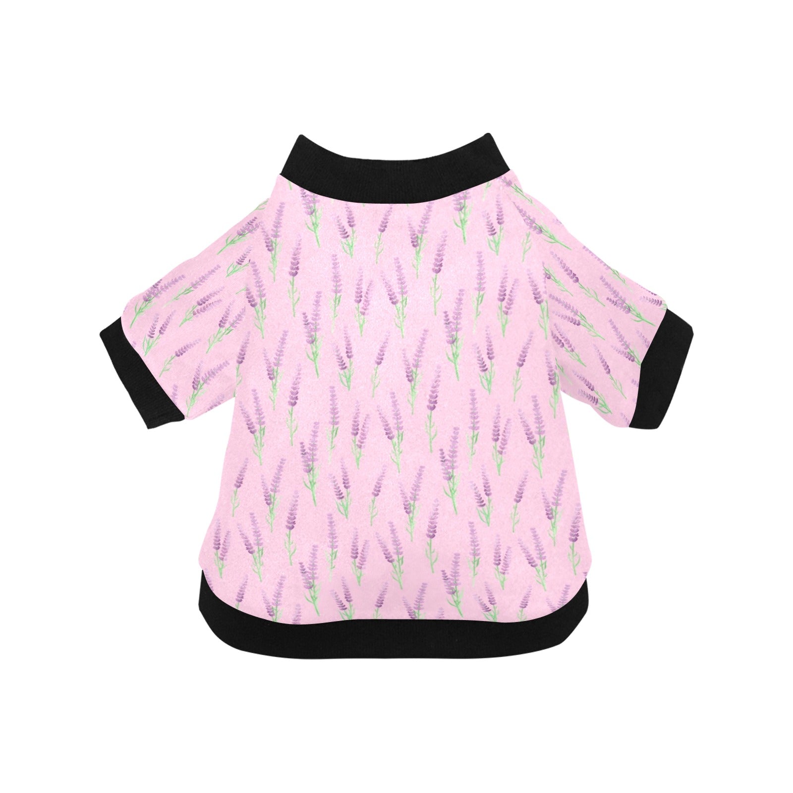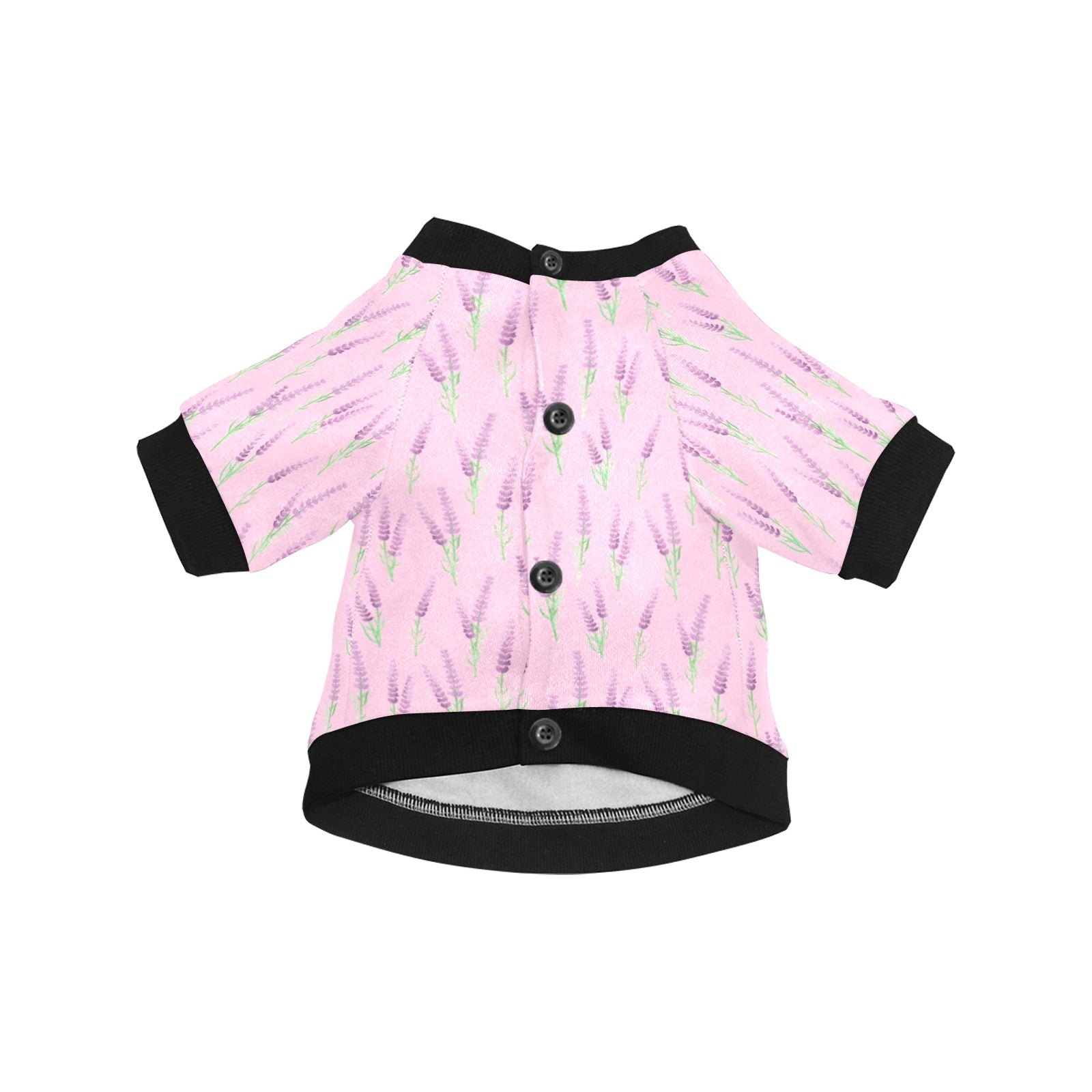 Lavender pattern pink background All Over Print Pet Dog Round Neck Fuzzy Shirt