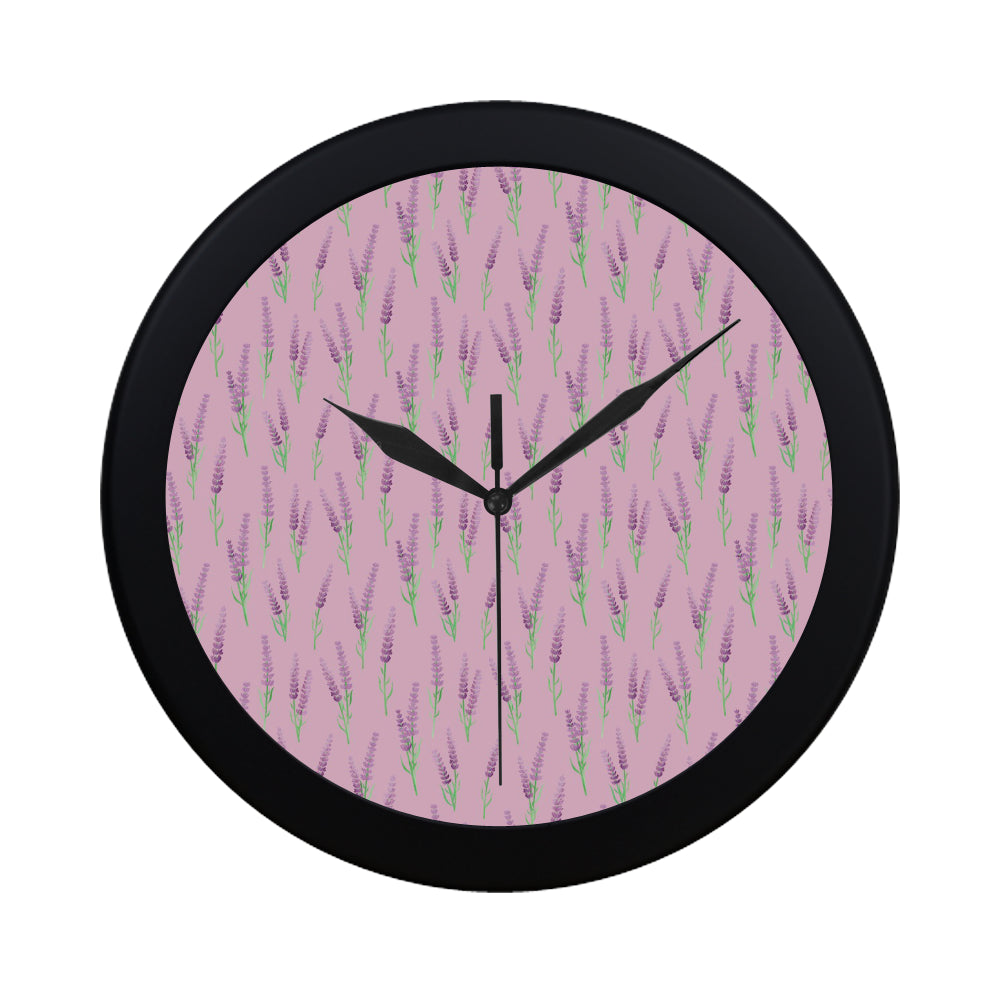 Lavender pattern pink background Elegant Black Wall Clock is a uniqued design and limited item. It made to order, hand printed, and sewn with love in our factory.