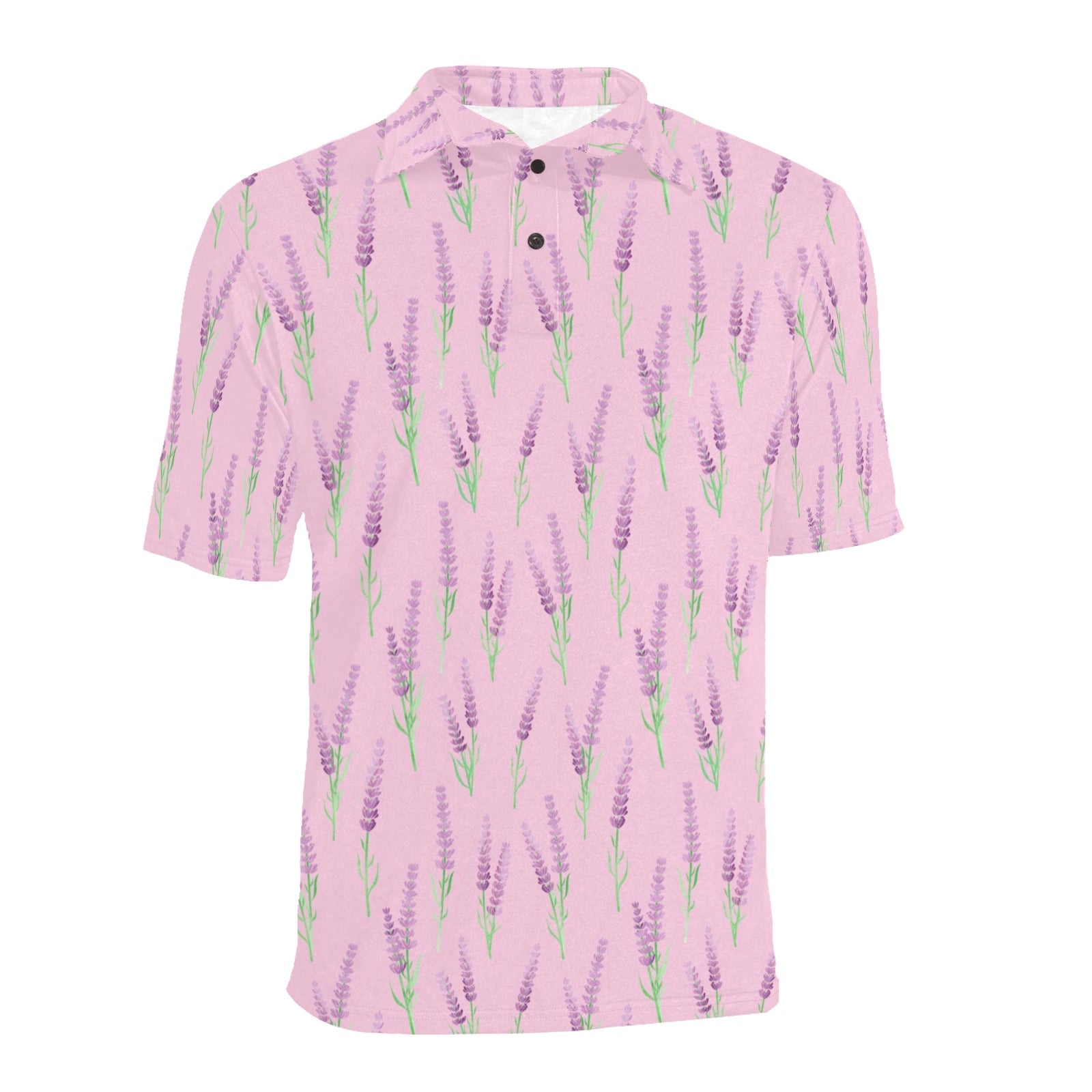 Lavender pattern pink background Men's All Over Print Polo Shirt