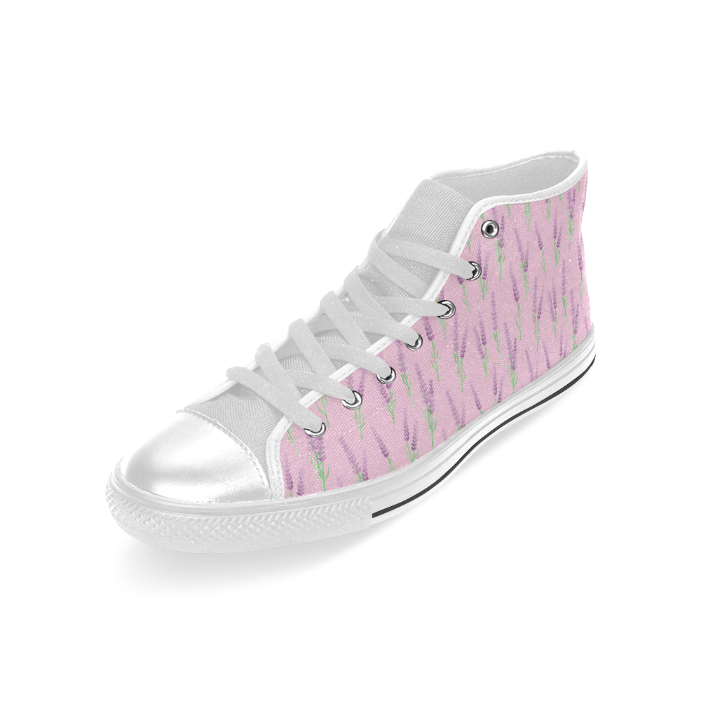 Lavender pattern pink background Men's High Top Canvas Shoes White