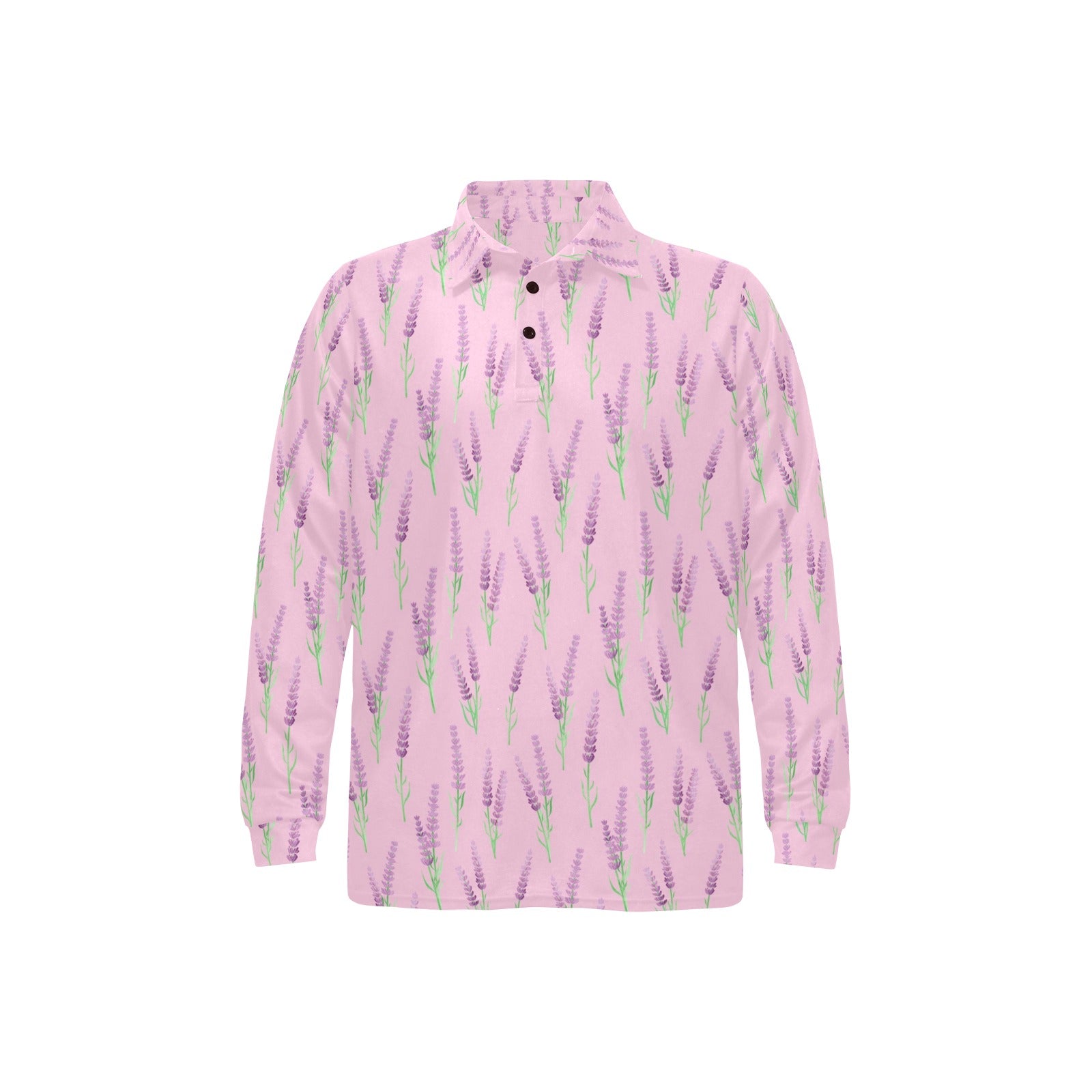Lavender pattern pink background Men's Long Sleeve Polo Shirt