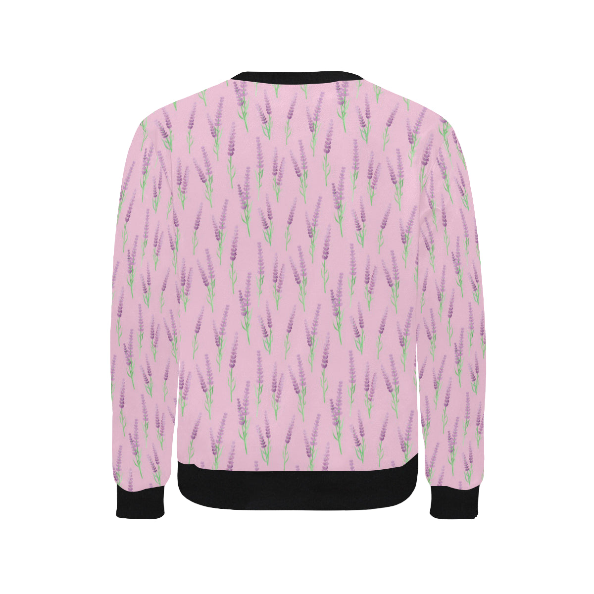 Lavender pattern pink background Men's Crew Neck Sweatshirt is a uniqued design and limited item. It made to order, hand printed, and sewn with love in our factory.