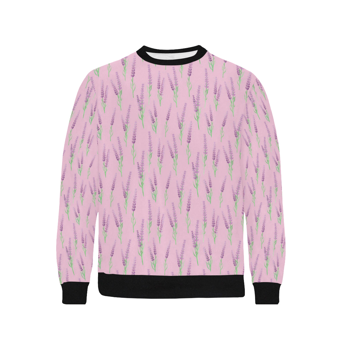 Lavender pattern pink background Men's Crew Neck Sweatshirt