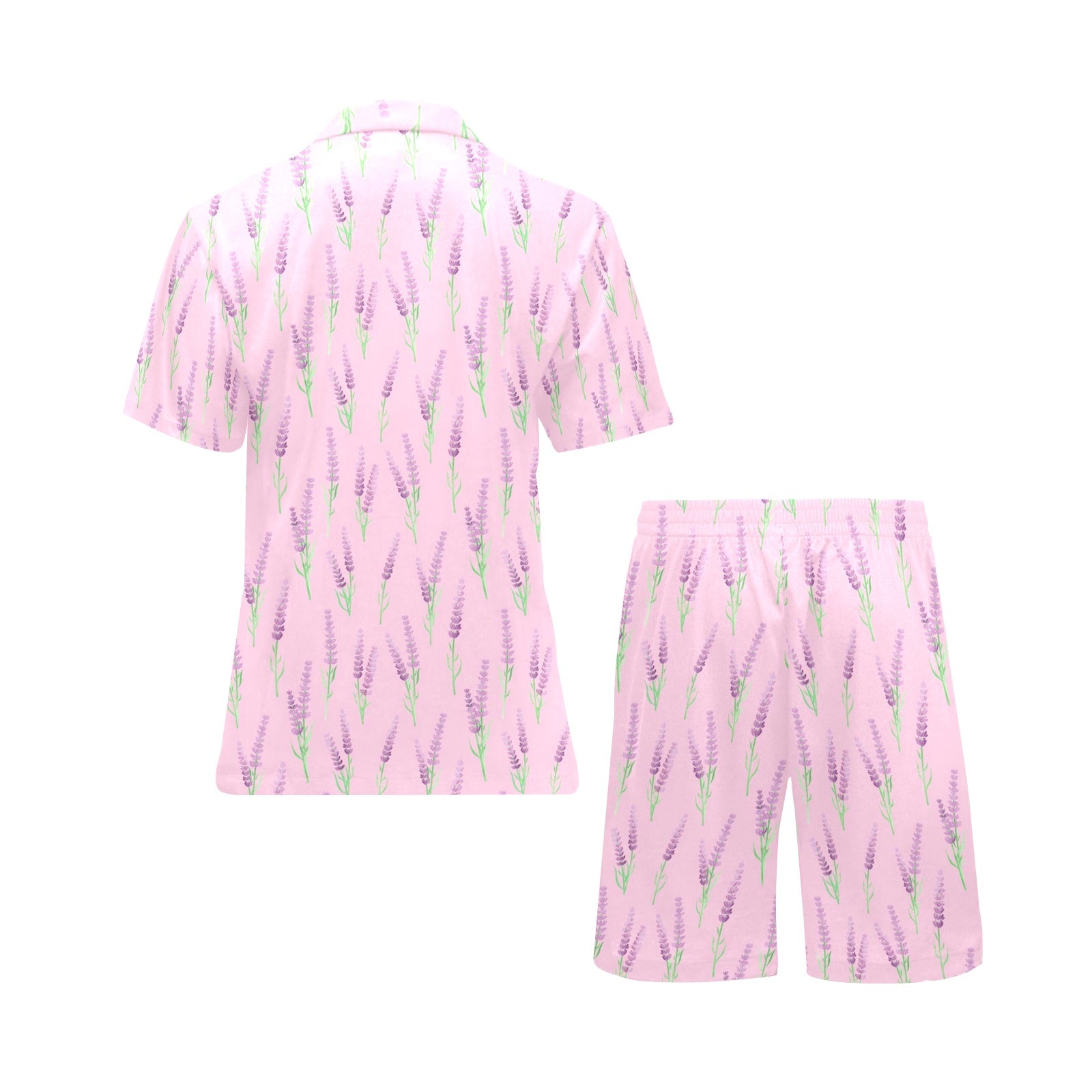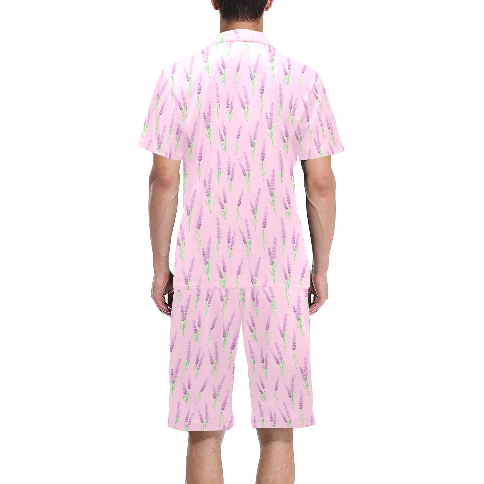 Lavender pattern pink background Men's V-Neck Short Pajama Set