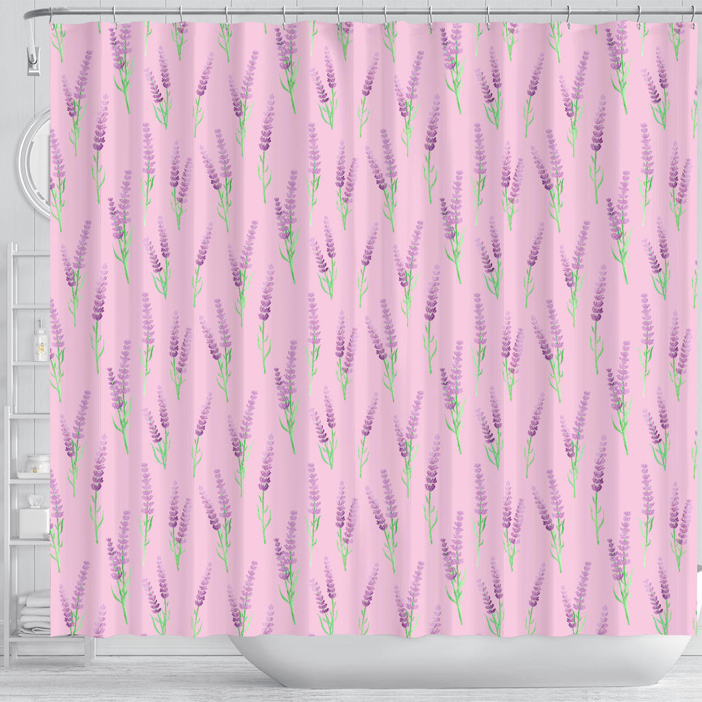 Lavender pattern pink background Shower Curtain is a uniqued design and limited item. It made to order, hand printed, and sewn with love in our factory.